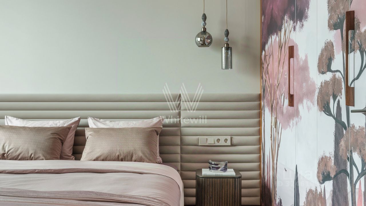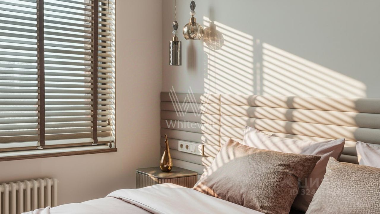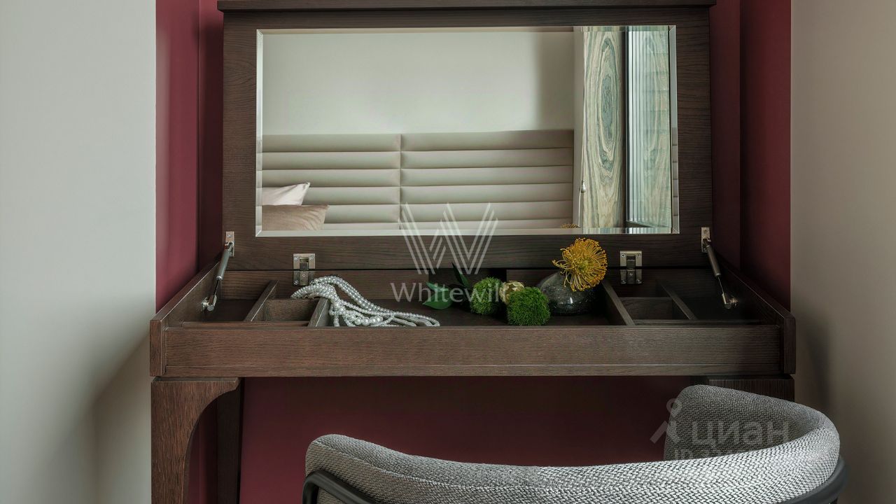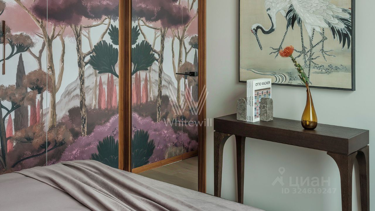 Уютная квартира с 1-й спальней в комплексе бизнес-класса ''Береговой'' на берегу Москвы-реки. Квартира общей площадью 46 м² расположена на 26-м этаже. Выполнен дизайнерский ремонт в стиле ''джапанди'' в лаконичных светлых тонах. В отделке использованы натуральные материалы — керамогранит, дуб, орех, кварц, мрамор, натуральный камень. Интерьер дополняют элементы мозаики и живопись. Панорамные окна наполняют пространство светом и открывают вид на реку и башни делового центра ''Москва-Сити''.