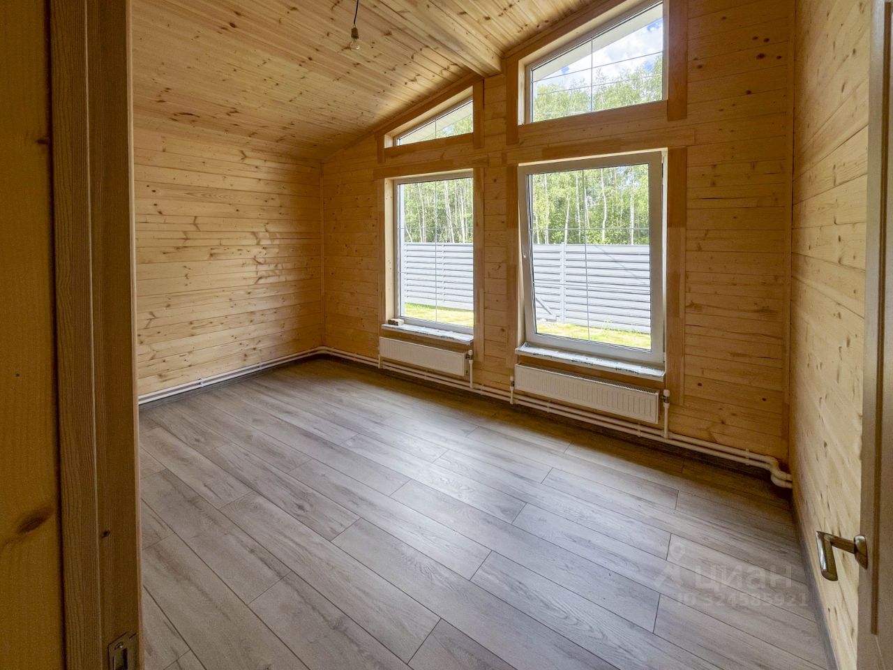 Дом 121 м² на 7 сотках, отделка ''под ключ''. Кухня-гостиная 34 м² с выходом на террасу 26 м², три комнаты 12/12/14 м², санузел, техпомещение, холл, тамбур. Круглогодичное проживание. Вода: скважина и водонагреватель, подведена в кухню и санузел, установлены душевая кабина, раковина, унитаз, смесители. Канализация: локальное очистное сооружение. Электрика: 15 кВт, свет, розетки, выключатели. Отопление: твердотопливный + электрический котёл, радиаторы, антифриз. Каркас: пиломатериал камерной сушки, утеплитель 200 мм (стены/пол/потолок). Фундамент свайный, кровля металлочерепица. Внутренняя отделка евровагонкой, фасад — имитация бруса/фасадная плитка. Двери: входная металлическая, межкомнатные деревянные. Окна ПВХ со стеклопакетами.