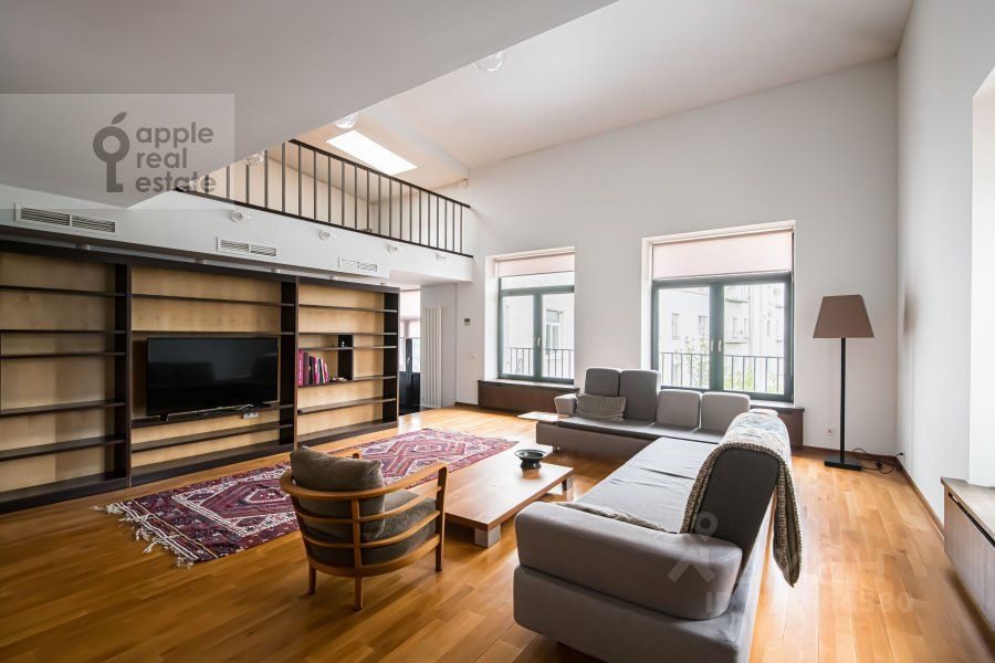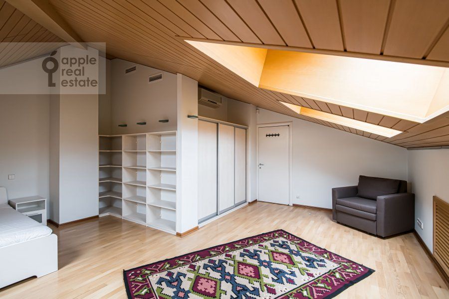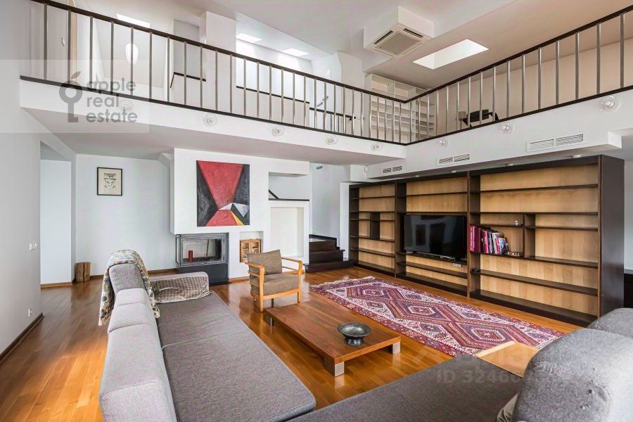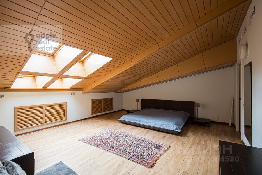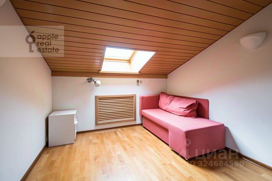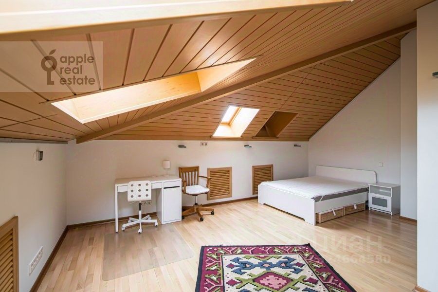 На 2 уровне: 3 спальни, кабинет, гардеробная, 2 c/у. Окна в тихий переулок, во двор.