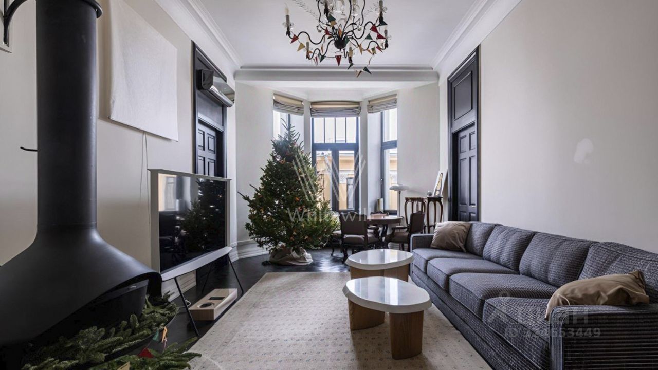 Просторная квартира с дровяным с камином в старинном особняке в тихом переулке на Патриарших. Сохранена историческая лепнина, дверные ручки, двери отреставрированы, на кухне потолок со сводами Монье. Потолки 3,8 метра и большое количество окон создают пространство, наполненное светом и воздухом, в каждой комнате установлена вентиляция.