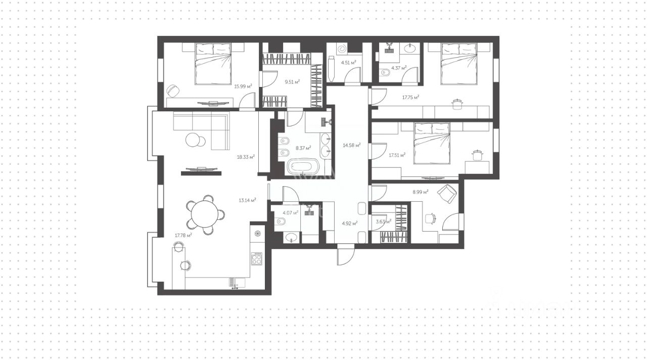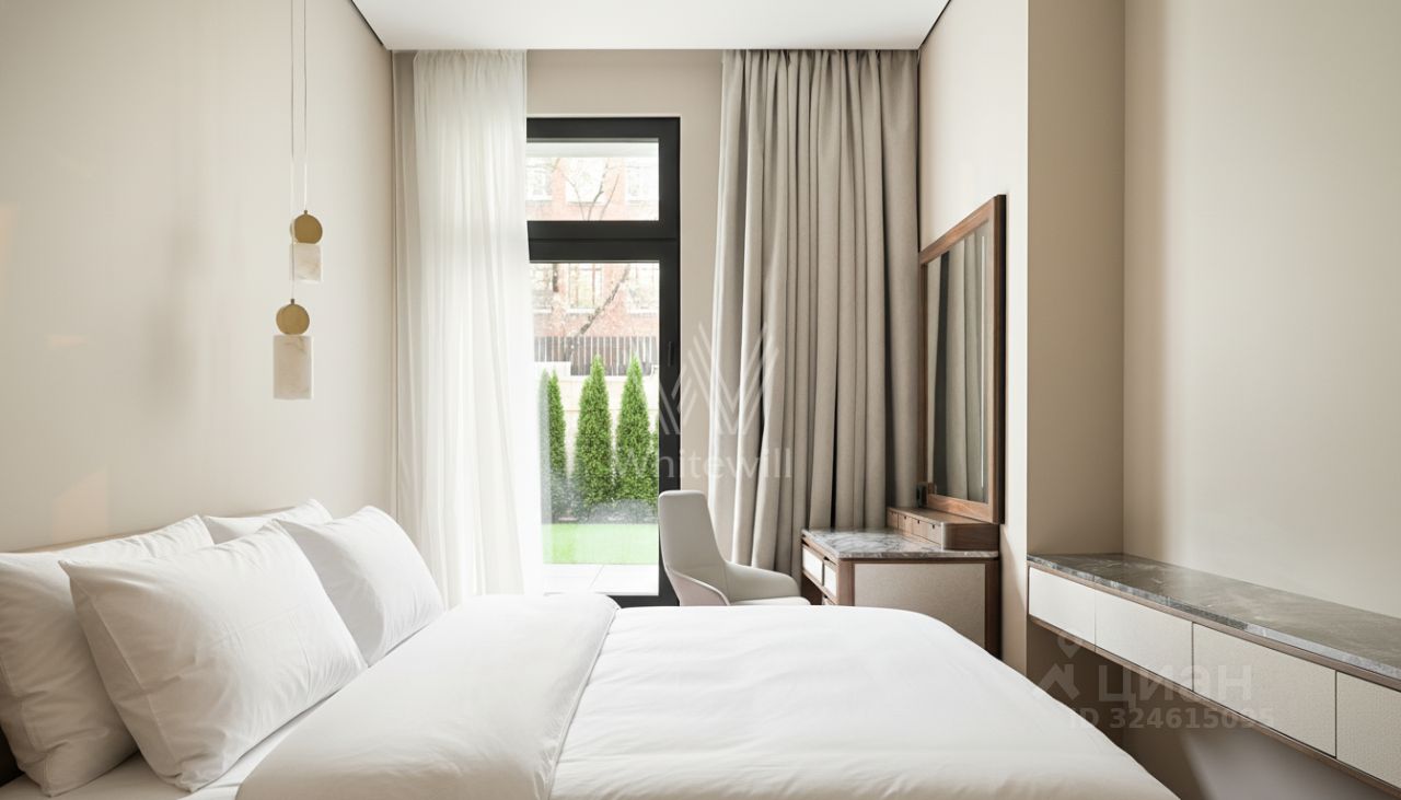 Просторная квартира с тремя спальнями и патио в комплексе премиум-класса Savvin River Residence на набережной Москвы-реки. Квартира общей площадью 177 м² расположена на четвёртом этаже. Интерьер оформлен в современном стиле. Установлены системы увлажнения воздуха и датчики протечек воды. Квартира укомплектована мебелью и бытовой техникой.