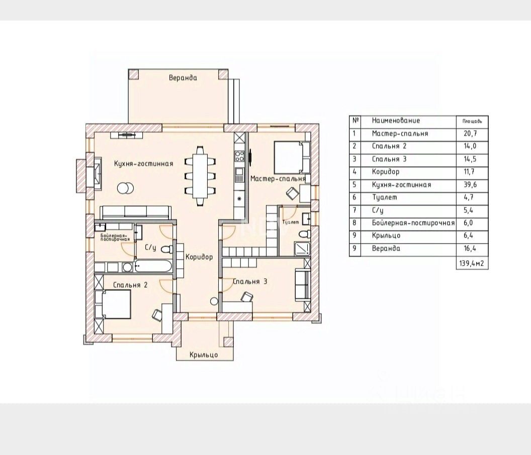 Лот 48494237. Комфортный безупречный одноэтажный дом в стиле Л.Райта. ПОДХОДИТ ПОД СЕМЕЙНУЮ ИПОТЕКУ. Идеальное сочетание современной архитектуры, функциональной планировки и безупречного комфорта. Просторная зона кухни-столовой-гостиной с выходом на террасу. Панорамное остекление во всех помещениях. Продуманная планировка включает: Мастер-спальню с собственной ванной комнатой и гардеробной для максимального удобства Две уютные детские спальни. Котельная, постирочная, санузел и гардеробные. Дом построен из газоблока, фасад отделан керамзитным морозостойким кирпичом, крыша - мягкая кровля, что гарантирует долговечность и отличные теплоизоляционные свойства. Технические характеристики: Фундамент: сваи железобетонные забивные 200 мм, высота сечения 3000. Ростверк железобетонный парирующий , демпфер на землю пенопласт 100 мм, высота от 400 мм до 1200, ширина 400 . Бетон марка 300 гравий фракция 5-20. Плита пола с армировкой сеткой металлической 250/250 арматура 12 . Высота стяжки 12-13 см бетон марки 300 графит фракция 5-20 Стены наружные - газобетонный блок D500 толщина 300 облицован керамическим кирпичом вышневолоцкая керамика марка М200 связан с газоблоком сеткой и подвесами с оставлением воздушного зазора 3 см. Армопояс железобетонный 200/200 мм по периметру внешних стен и несущих стен Перегородки и несущие стены: из газобетонного блока с армировкой арматурой А3 в 4 рядах высоте. Перекрытие деревянное балка 200 мм с утепление Технониколь базальтовыми плитами 200 мм Крыша: мягкая кровля Технониколь кантри мичиган (гарантийный срок 50 лет). Участок 20x30 м (ИЖС) с подготовленным газоном и отмостками готов для воплощения ваших ландшафтных идей. Дом сдается в теплом контуре с заведенными коммуникациями вам останется только выбрать финишную отделку. Отделка под ключ от застройщика - очень выгодное предложение! Не упустите свой шанс стать обладателем идеального дома. Наслаждайтесь загородной жизнью, не отказывая себе в городских удобствах! Звоните и записывайтесь на просмотр!