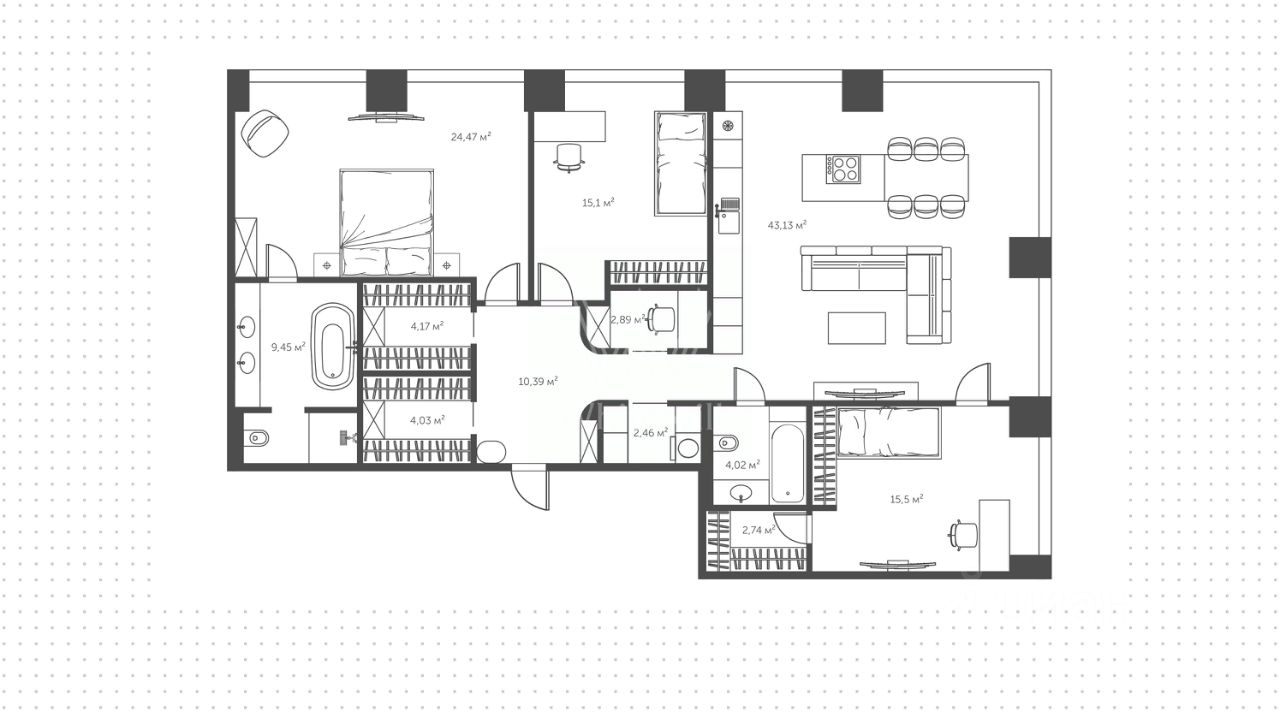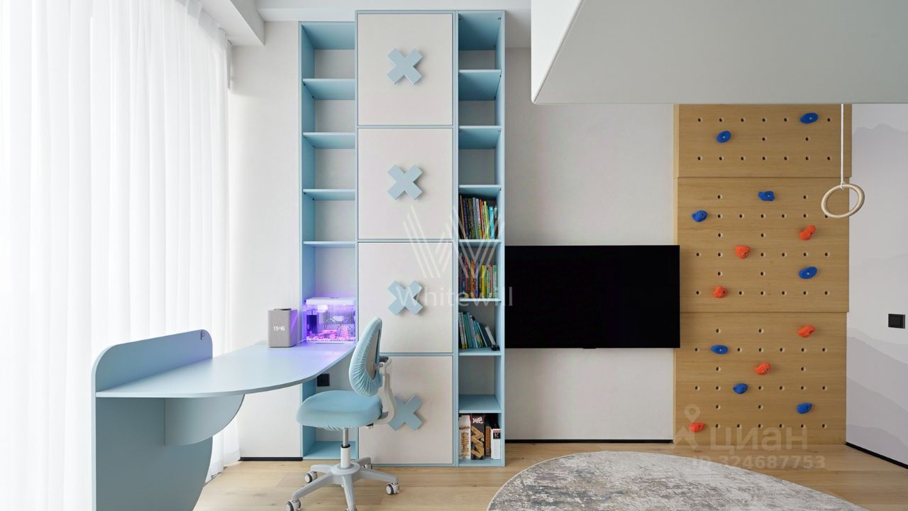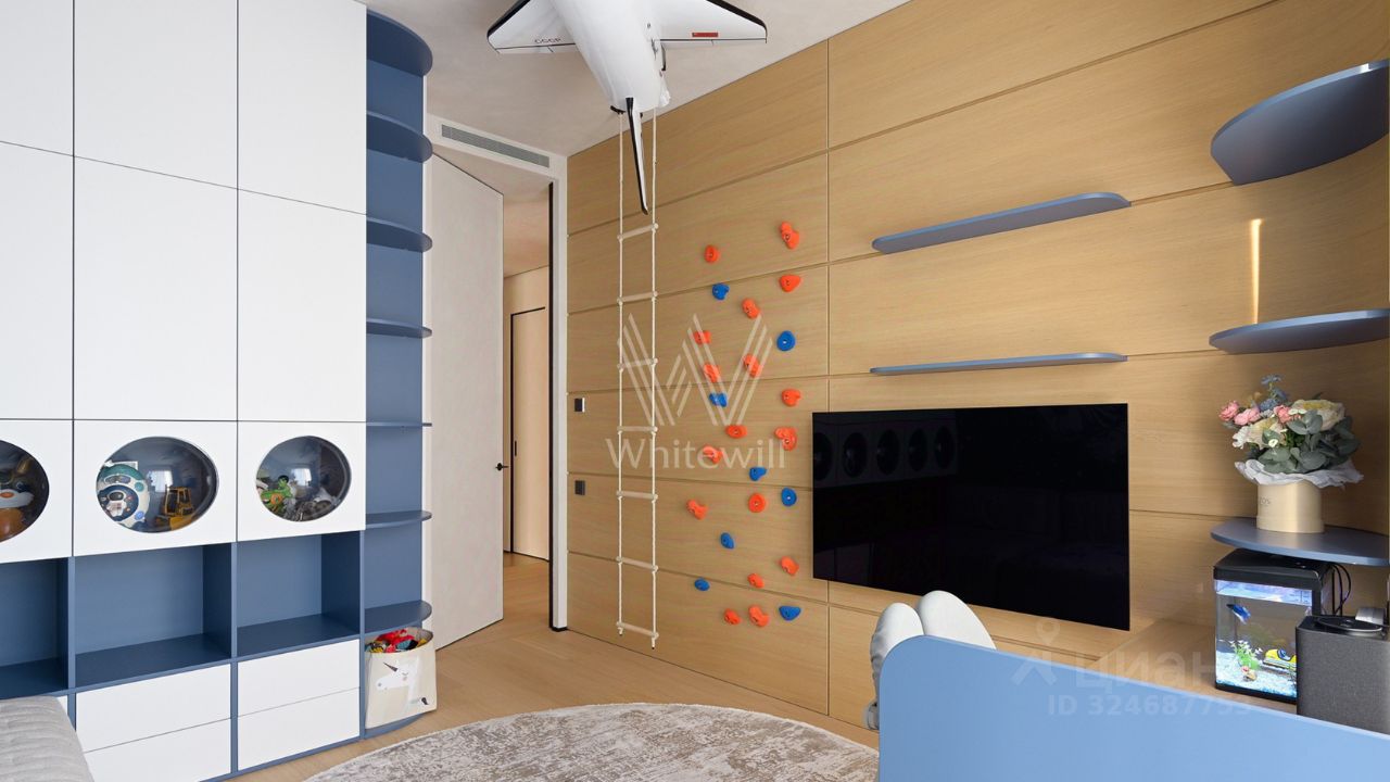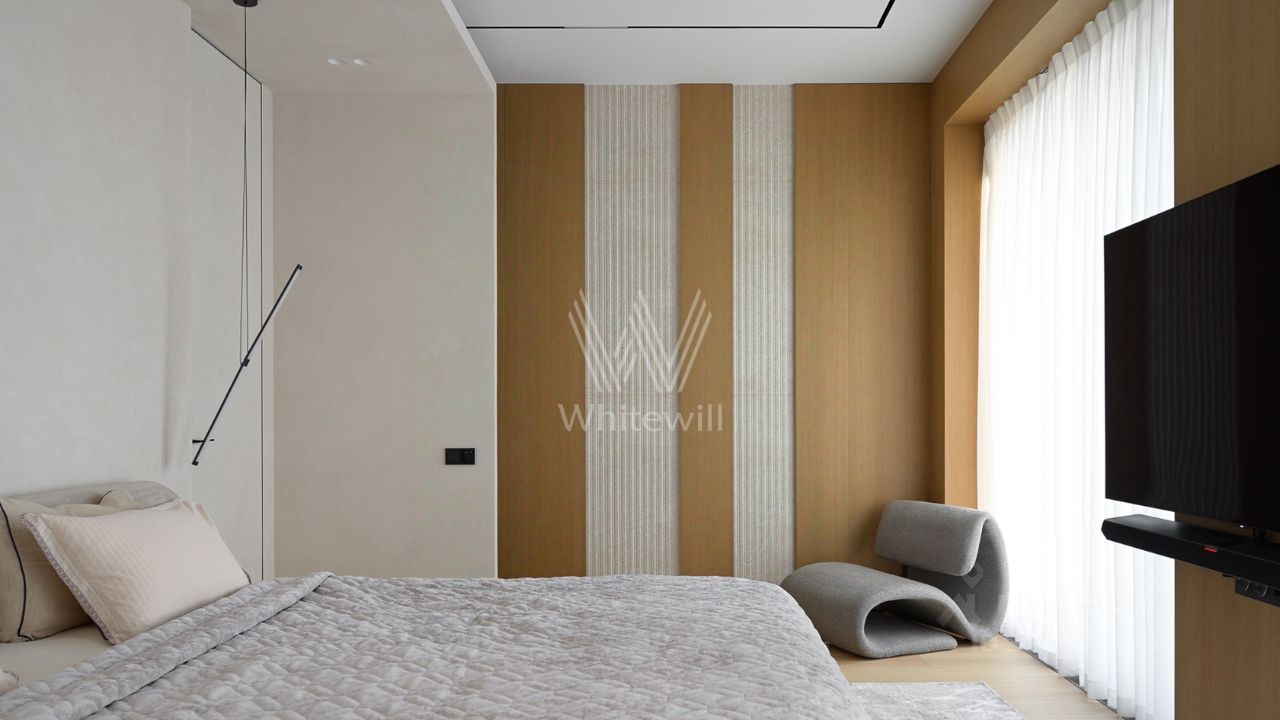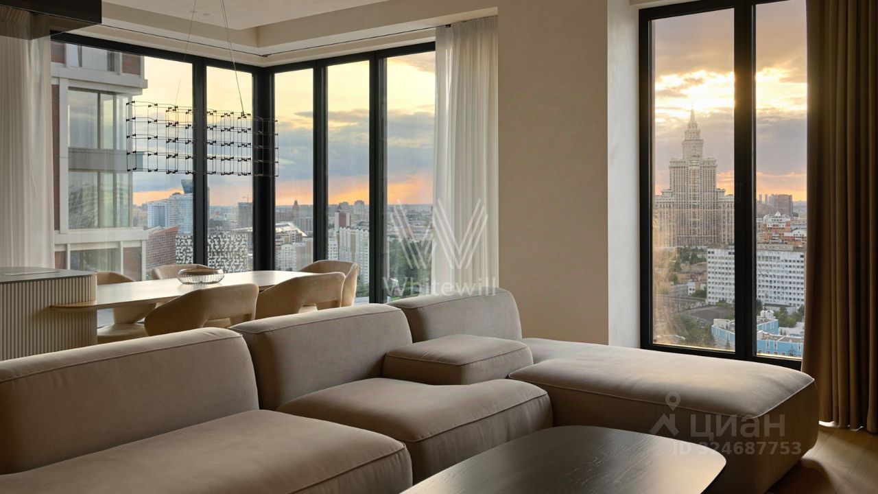Просторная квартира с тремя спальнями в комплексе премиум-класса Prime Park. Квартира площадью 138 м² расположена на 25-м этаже в корпусе R-6. Выполнена отделка по индивидуальному проекту. На полу выложена инженерная доска Kahrs, покрытие стен и потолков под микроцемент Travertino, керамогранит от Porcelanosa, керамика — Atlas Plan. Квартира полностью укомплектована премиальной техникой Miele, Kuppersbusch, LG, мягкой мебелью Vankov, Boca Room, PlaceFreedom, Dan Form, B&B italia. Сантехника от брендов: Gessi, AXOR, Hansgrohe, Omoikiri, умные унитазы и ванны TOTO, раковины — Villeroy&Boch.
