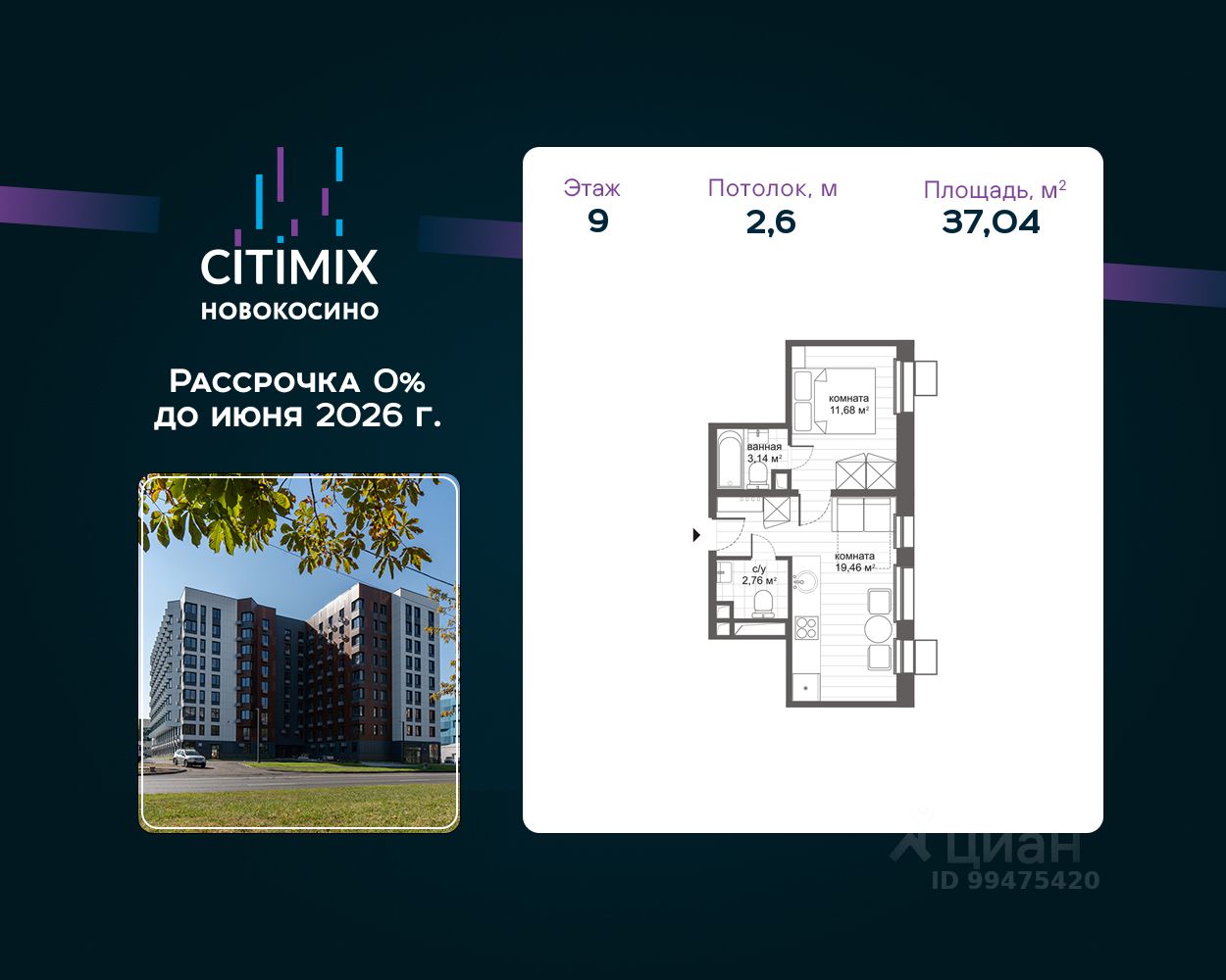 МФК ''CITIMIX Новокосино'' находится в 15 минутах пешком от м. Новокосино, время поездки до центра Москвы займёт всего 30 минут.