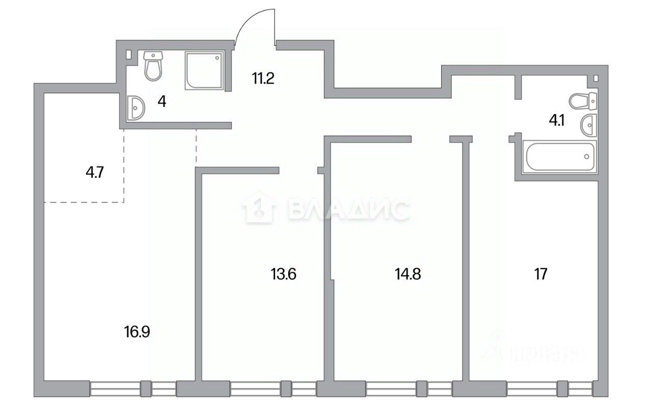 Планировка и площадь: Четыре изолированные комнаты с площадями 13,6 + 14,8 + 17 + 16,9 кв. м предлагают множество возможностей для зонирования пространства. Такая планировка отлично подойдёт для большой семьи.