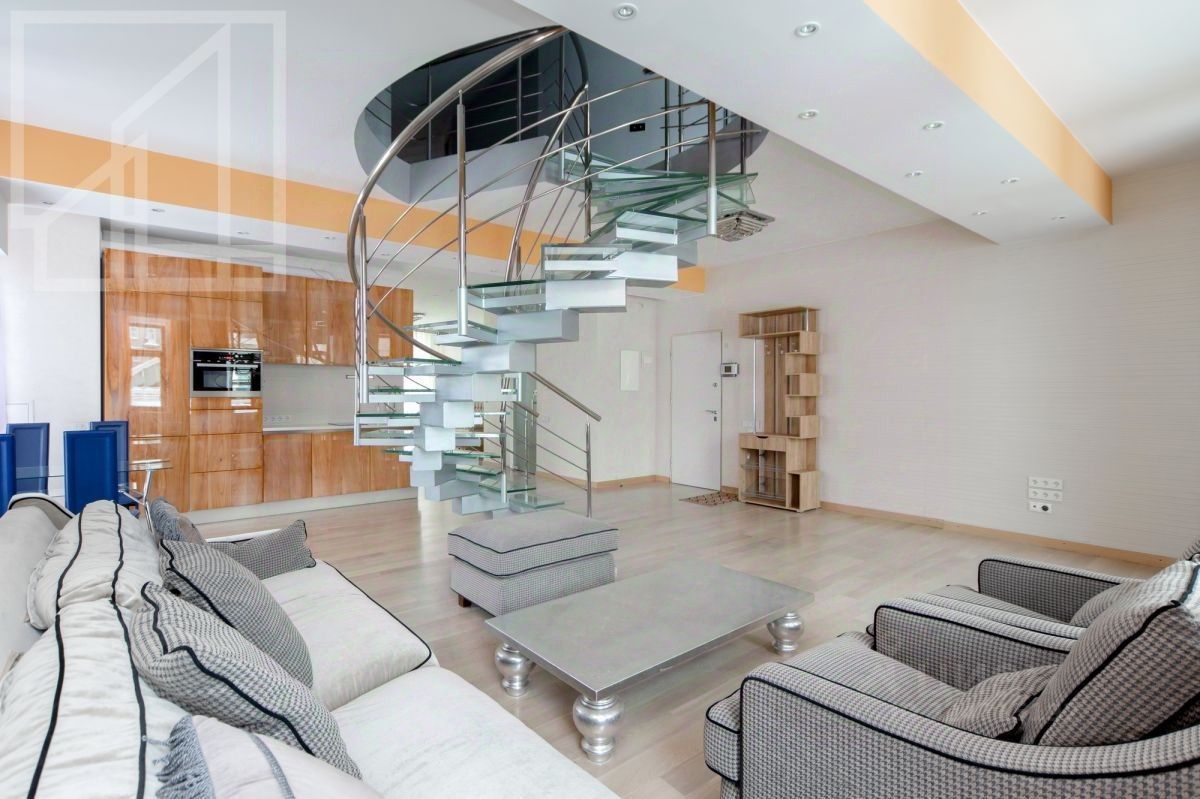 Лот 551485. Бонус коллегам! Предлагается двухуровневая трехкомнатная квартира с дизайнерским ремонтом в элитном клубном доме.