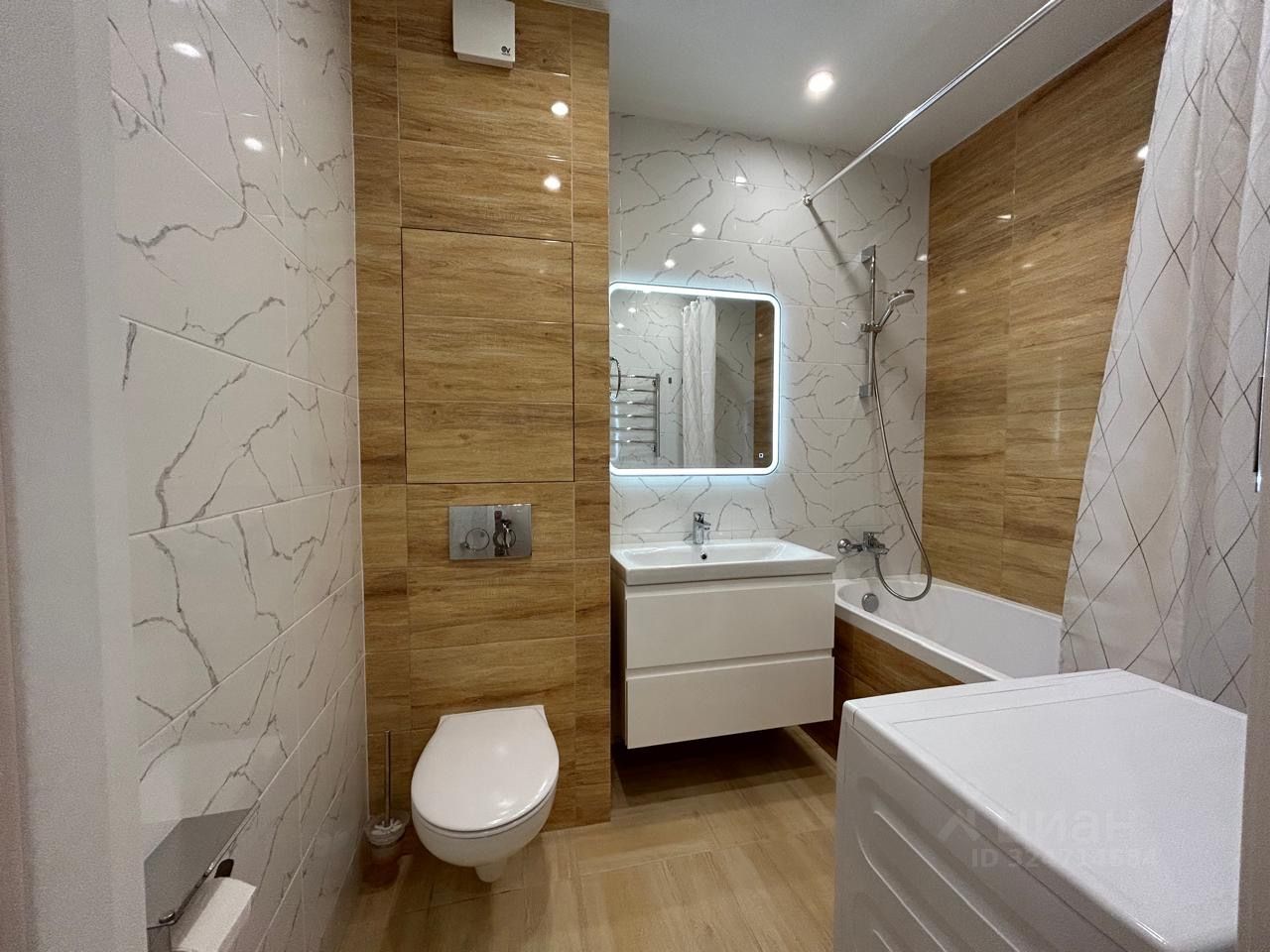 Полностью оборудована новой техникой и мебелью ванная комната.