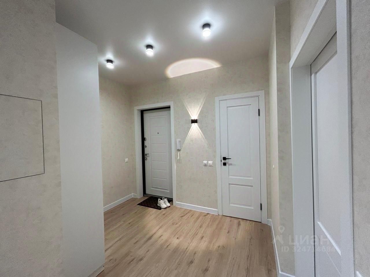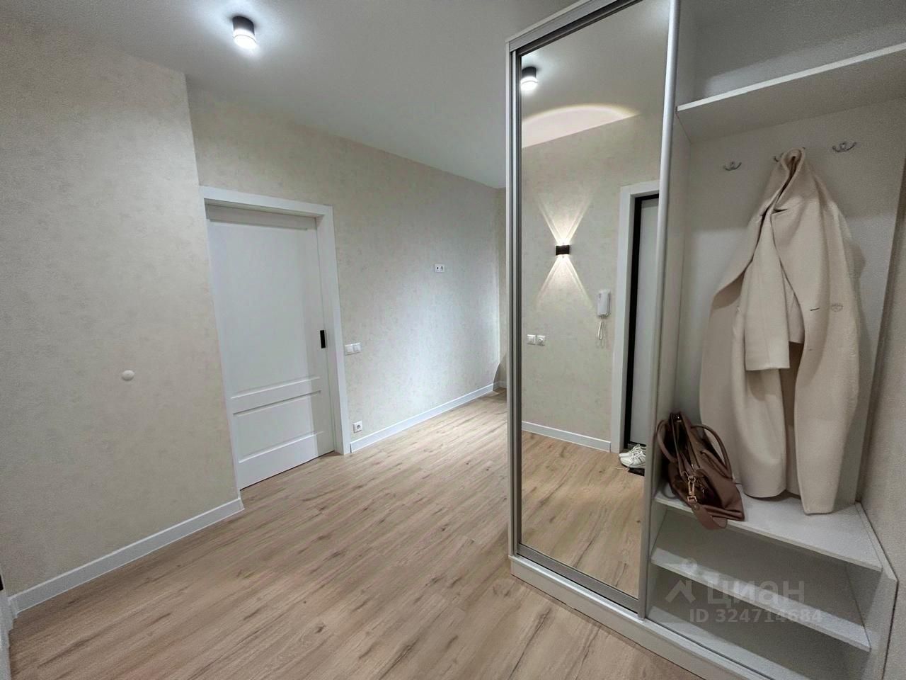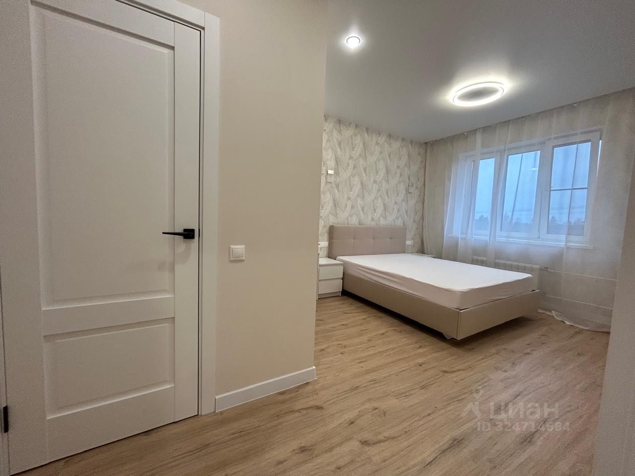 Большая жилая комната 19 кв.м с шикарной кроватью, гардеробной с грамотно-организованной системой хранения, просторный холл, дорогие обои, теплые тона в интерьере - все это создает атмосферу гармонии и покоя.