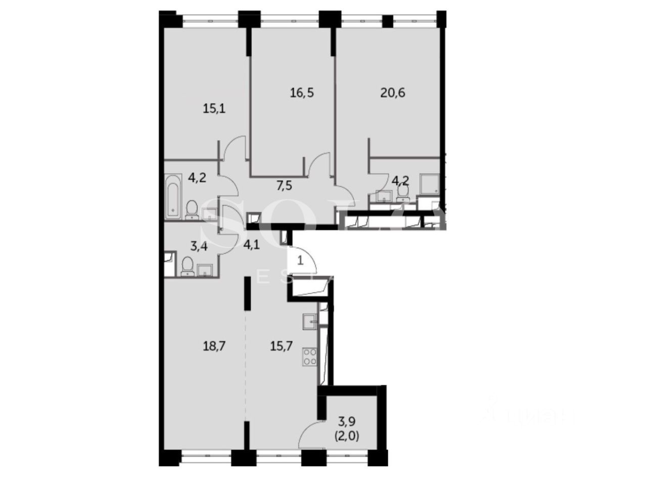 Продажа видовой 4-комнатной квартиры общей площадью 114 кв.м. ЖК Sydney City. Метро Хорошёво, 5 минут на авто. Улица Шелепихинская 40к3. Корпус 1. Квартира продается без отделки, что позволяет воплотить в жизнь широкий спектр интерьерных решений. Высокие потолки 3,1 м.