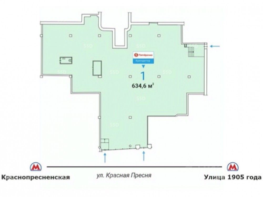 Продажа помещения с арендатором, расположенного по адресу: Красная Пресня, 23кБ, стр. 1, ЦАО, район Пресненский, 5 минут пешком от метро Краснопресненская. Интенсивный пешеходный трафик в течении всего дня. Высокий рекламный потенциал и место для размещения вывески Отличная пешеходная и транспортная доступность. Арендатор: Сеть супермаркетов ''Пятерочка''