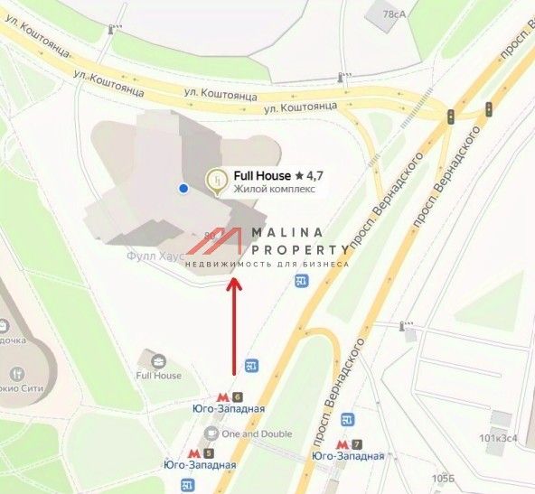 КЛУБНЫЙ ДОМ БИЗНЕС-КЛАССА ''Full House'' расположен прямо выходе из метро Юго-Западная, на пересечении проспекта Вернадского и ул. Коштоянца. Сверхинтенсивный трафик. Под помещениями организован подземный паркинг. В комплексе распроданы практически все квартиры, осталось 23.