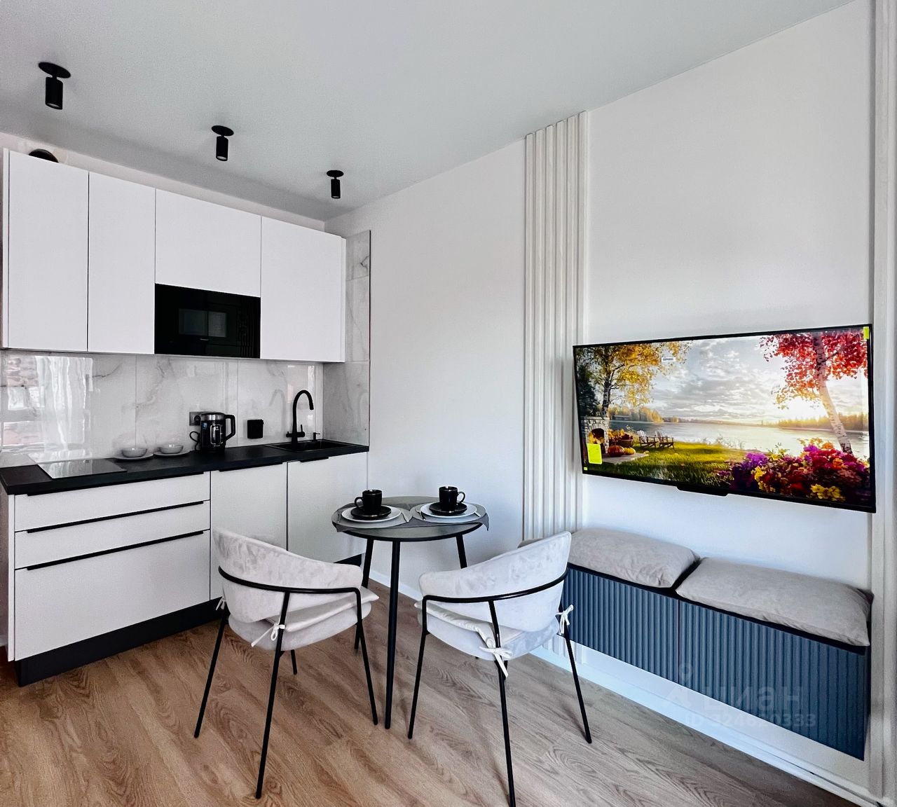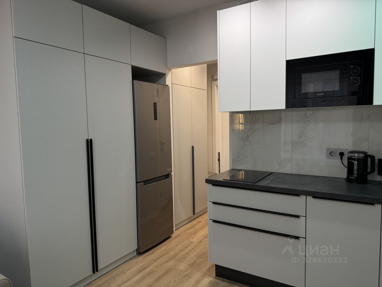 Есть посудомоечная машина, встроенная микроволновка, индукционная плита, фильтры для воды, холодильник no Frost, стиральная машина, телевизор еще даже в пленке (новейший), диван с ортопедическим матрасом