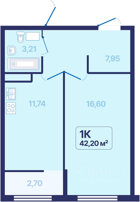 Общая площадь42,2 м2
