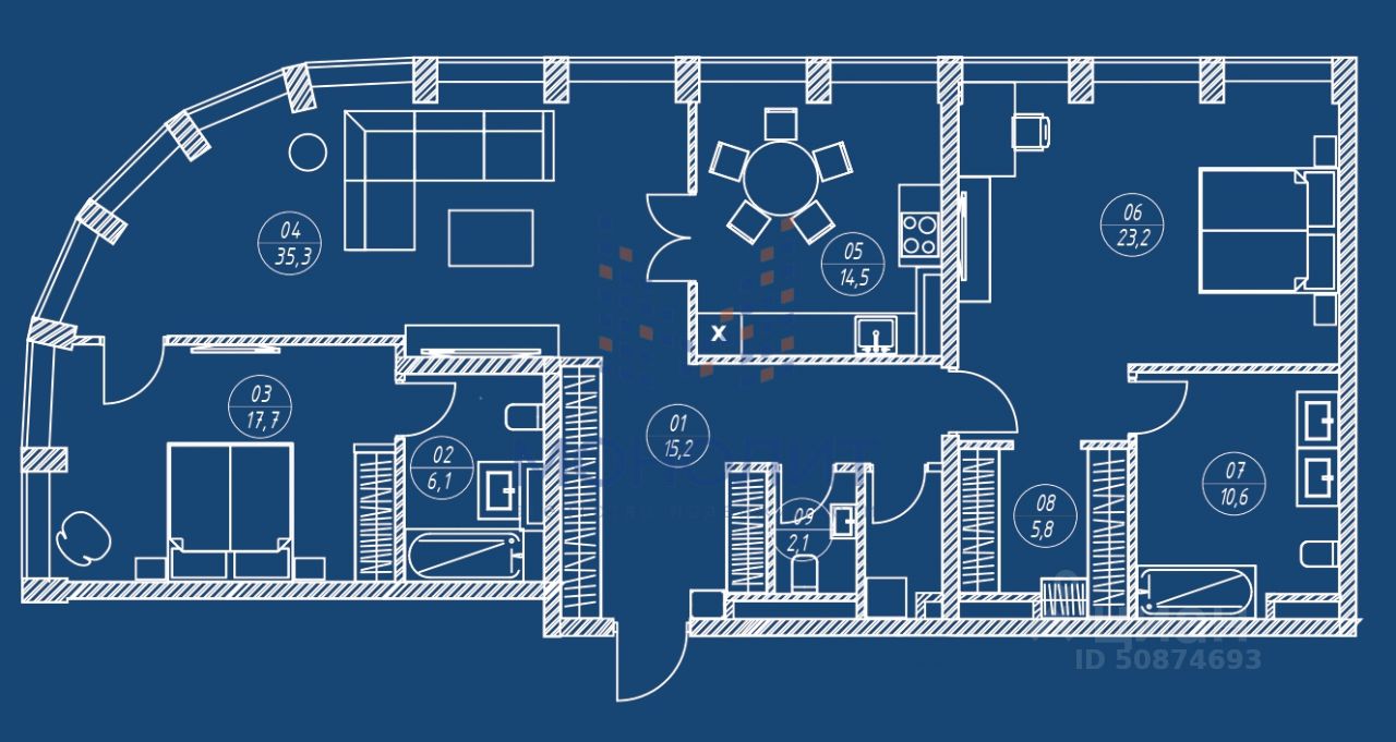 Предлагаются к продаже трёхкомнатные апартаменты площадью 136 м², расположенная на 10м этаже премиального жилого комплекса SkyView в престижном Пресненском районе Москвы. Основные характеристики: площадь: 137 м², этаж: 10й, количество комнат: 3, панорамные окна: 13 шт., высота потолков: 3,5 м, мокрые точки: 3 шт., свободная планировка.