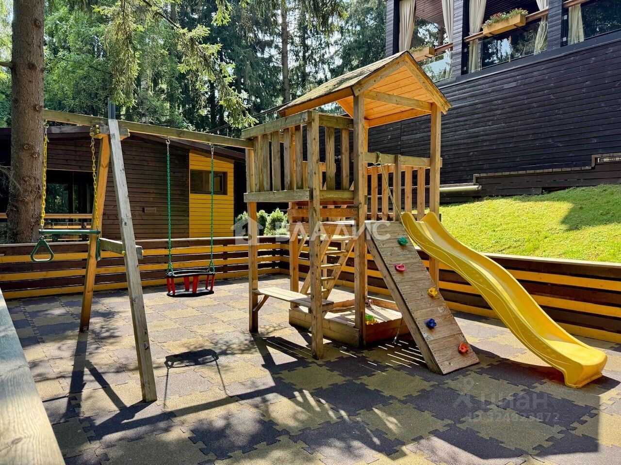 Уединение не означает изоляцию. Всего 7 минут — и вы на склонах престижного горнолыжного комплекса ''Сорочаны''. В непосредственной близости расположены гольф-клуб и вертолетная площадка, что подчеркивает высокий статус локации. Для семейного досуга на участке предусмотрены батут, детская площадка и великолепная мангальная зона в стильной беседке.