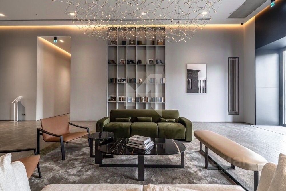 Интерьер квартиры, созданный талантливым дизайнером Массимо Йоза Гини, выполнен в стильном индустриальном ''эко-шик''. Пространство универсально и подходит для любого наполнения. Дерево, мрамор и гранит гармонично сочетаются, создавая атмосферу современного комфорта. Широкие оконные проемы в гостиной наполняют пространство естественным светом, а вытянутые окна в зоне мастер-спальни и гардеробной добавляют изысканности.