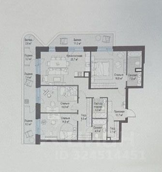 Общая площадь квартиры с учётом балконов и лоджий составляет 143,2 м2.