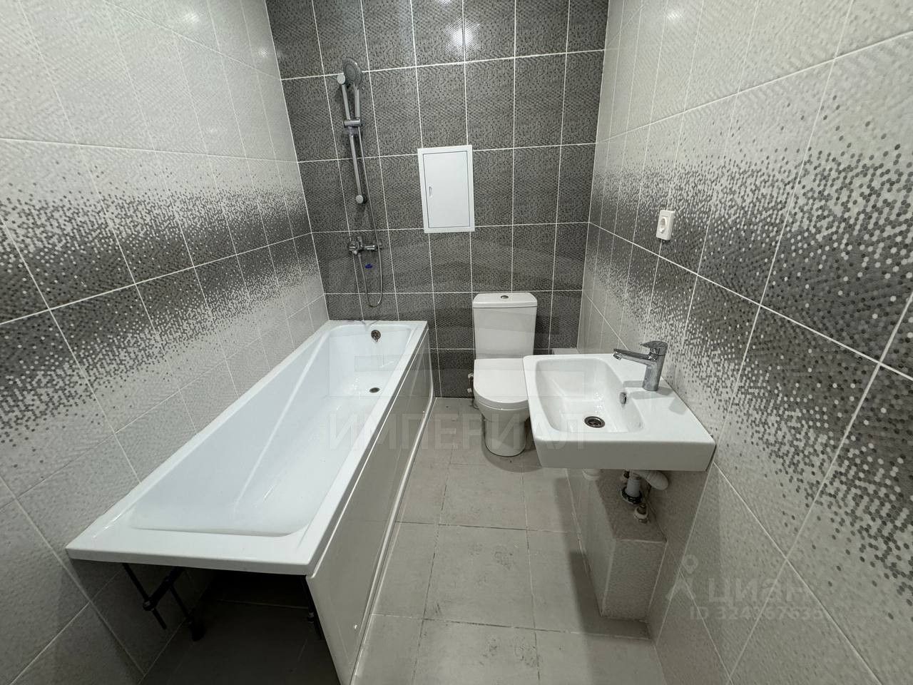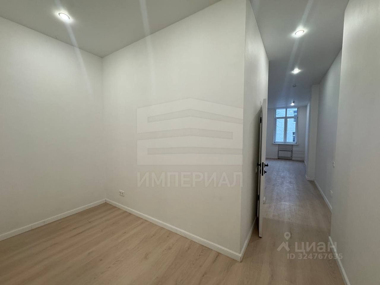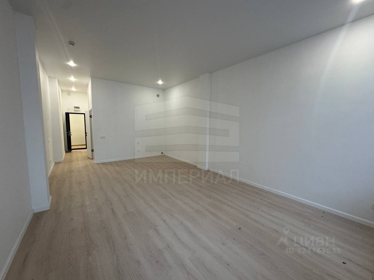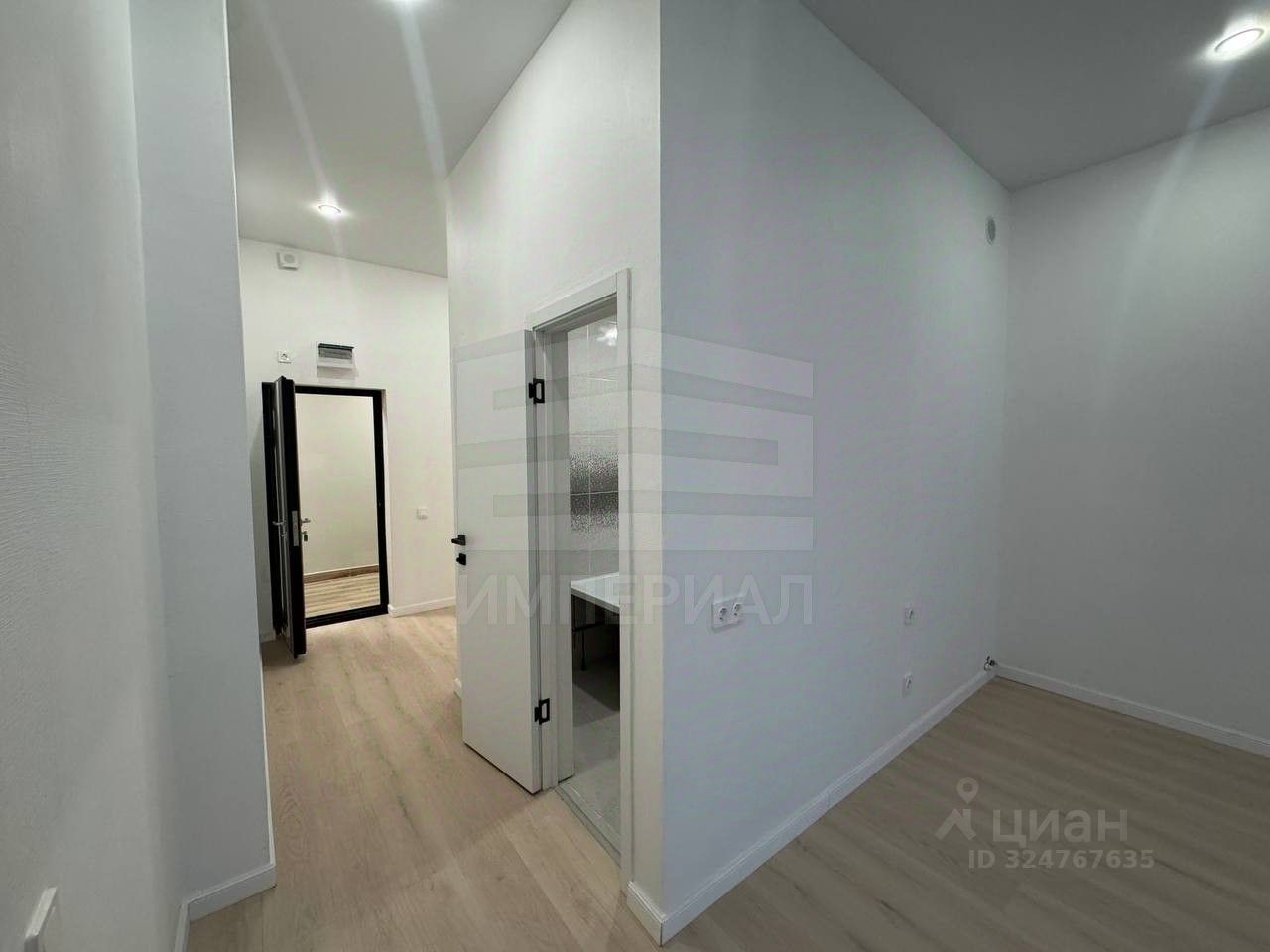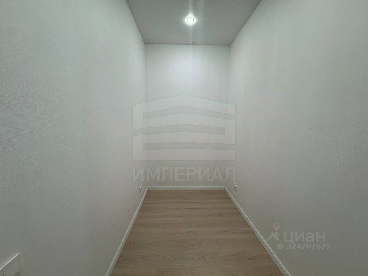 На стенах поклеены обои под покраску, на полу постелен ламинат с плинтусами и откосами. Есть вытяжная вентиляция в санузле и на кухне, выходы хв/гв, место под раковину на кухне. Кроме того, в помещениях уже есть выключатели освещения, розетки для бытовой техники и роутера, а также сделаны закладные для оптоволокна для интернета.