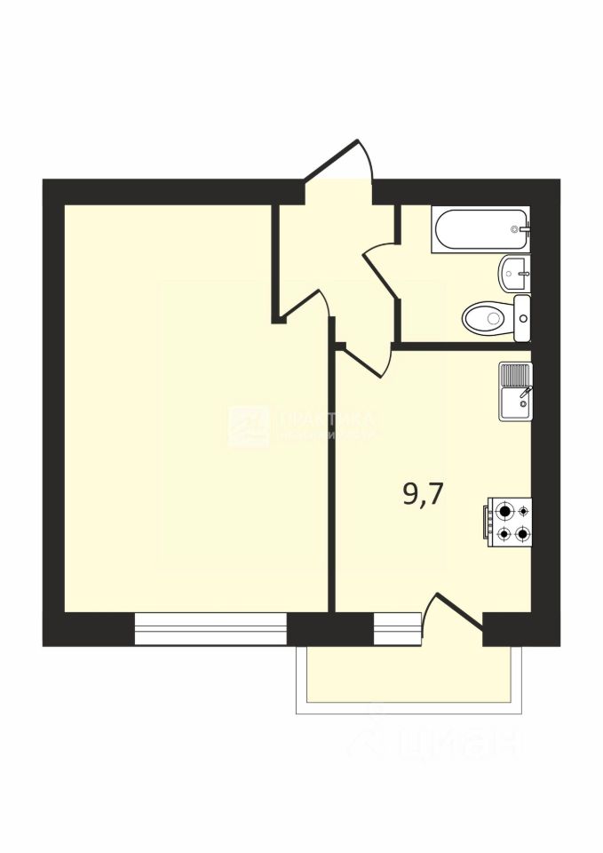 Имеется застекленный балкон с выходом из просторной кухни, площадью 9,7 кв.м..