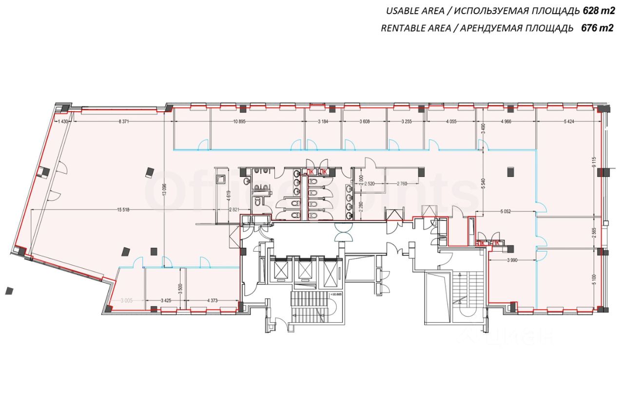 В помещении стандартная офисная отделка, смешанная планировка.