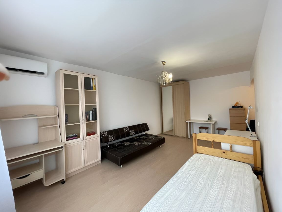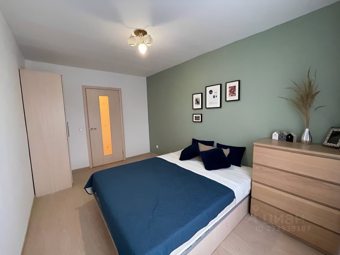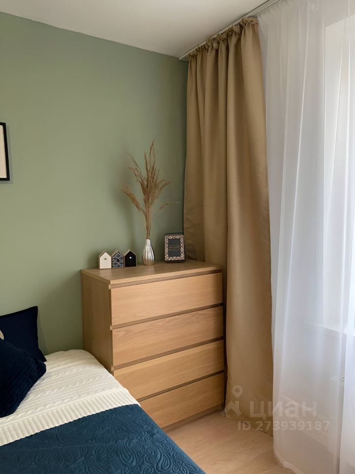 В спальне: двуспальная кровать с анатомическим матрасом, вместительный шкаф, комод.