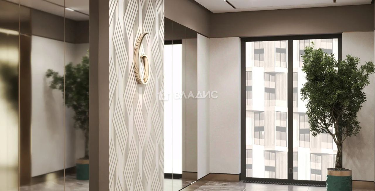 Окна выходят в тихий приватный двор-парк с ландшафтным дизайном. Панорамные окна и открытые балконы делают виды частью интерьера.