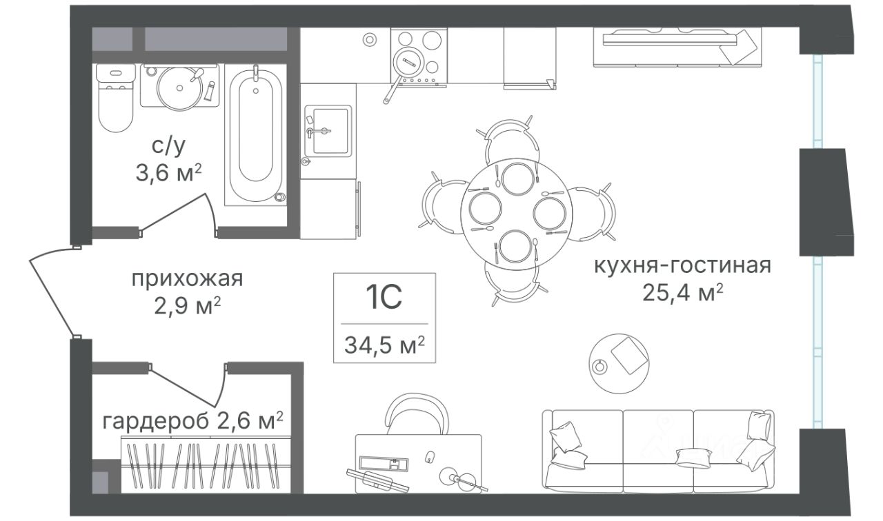 Продается студия 34,5 кв.м.