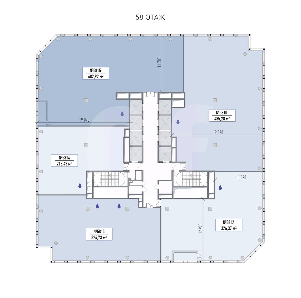 Площадь: 9 950 м2. Планировка: открытая. Состояние: под отделку. Ставка (включая эксплуатацию): 82 596 руб. за м2/год. Арендная плата: 68 485 558 руб./мес. Налог: включая НДС. Коммунальные расходы: оплачиваются по факту. Этаж: 55, 56, 57, 58, 60 из 61. Тип аренды: Прямая аренда. Охрана: круглосуточная охрана здания.