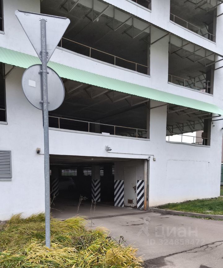 Машино-место внутри огороженной территории, на многоуровневом паркинге.