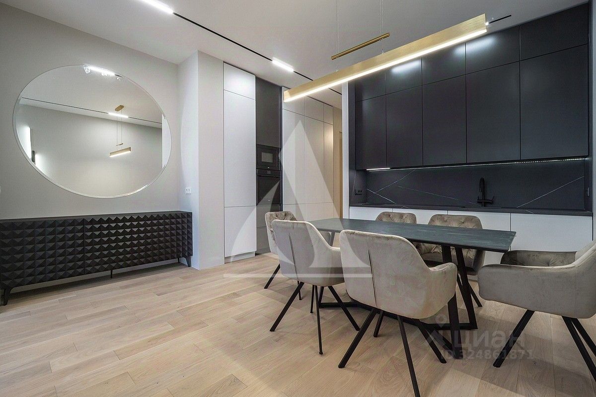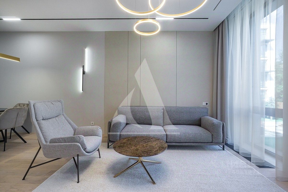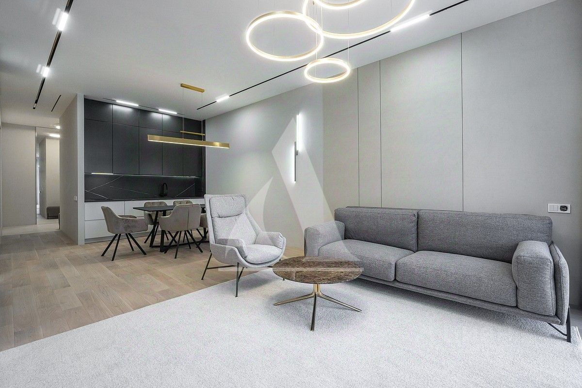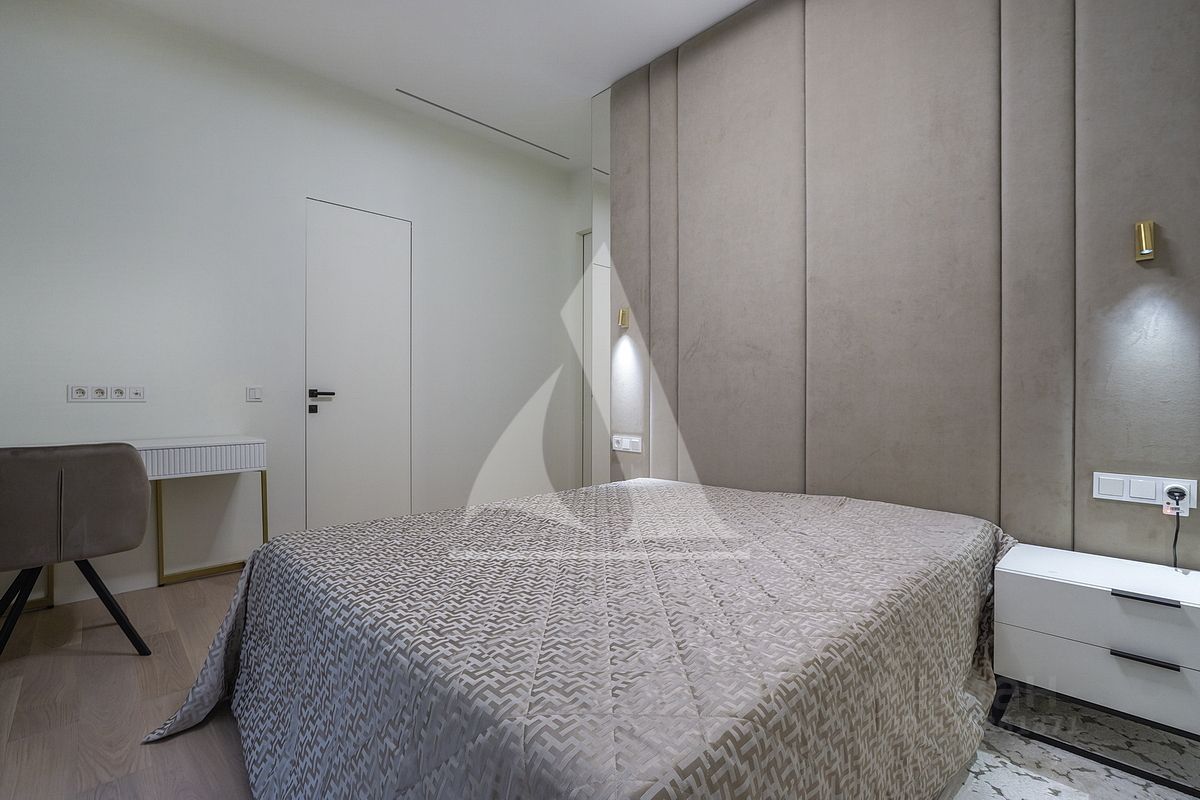 Новая качественная отделка. Гостиная-кухня, основная спальня с гардеробной и с/у, комната свободного назначения, гостевой с/у.