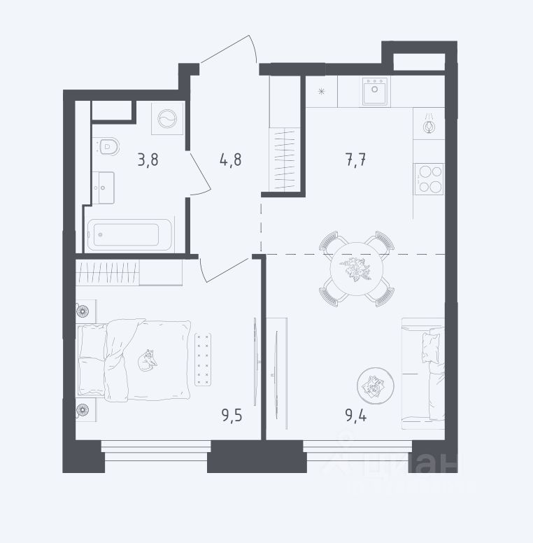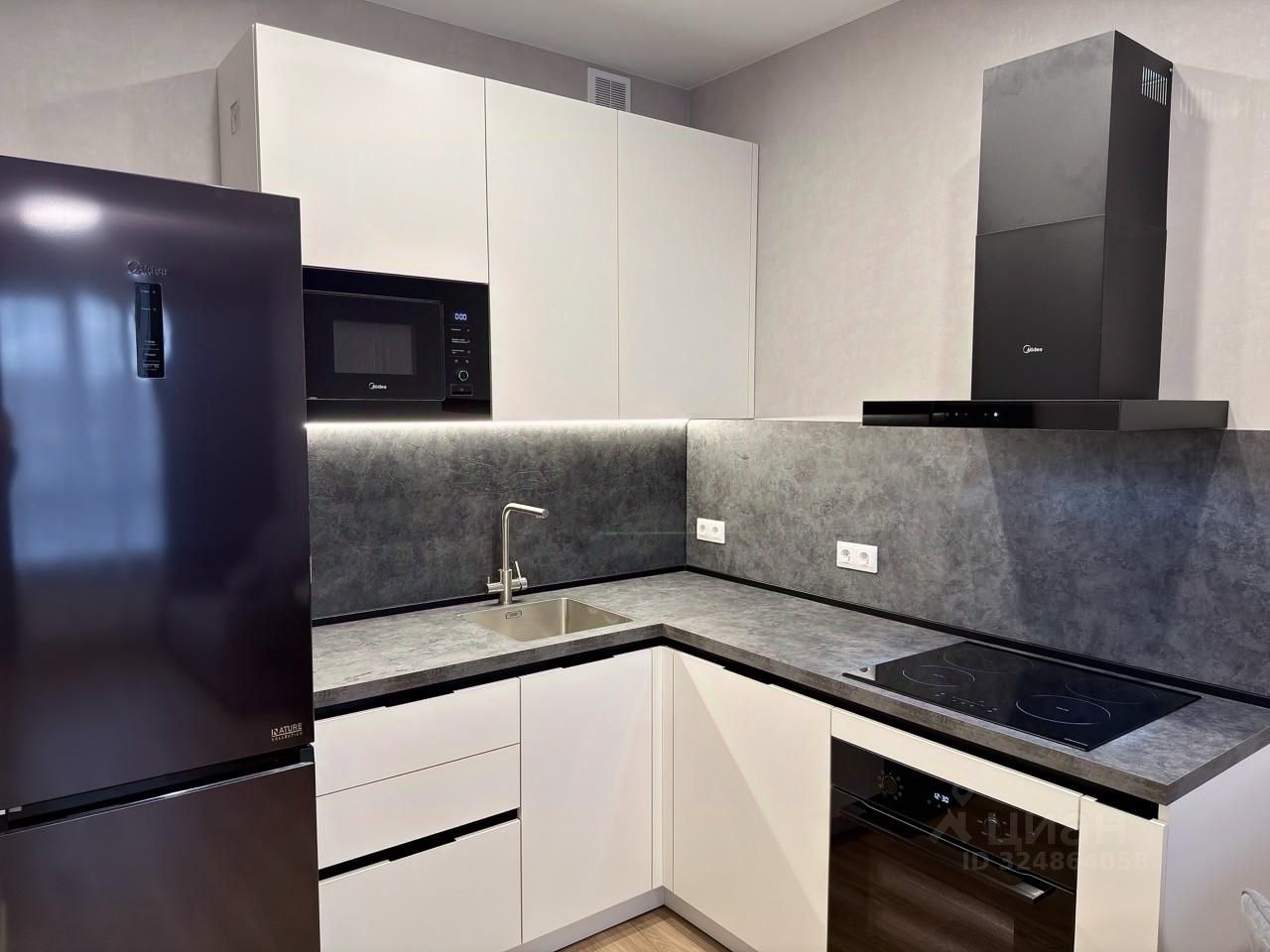 Техника: Мощный кондиционер, посудомоечная машина, индукционная варочная панель, духовой шкаф, встроенная микроволновая печь, большая стиральная машина, робот-пылесос, роутер и подключенный интернет, телевизор под запрос. Вид из окон в закрытый двор на южную сторону.