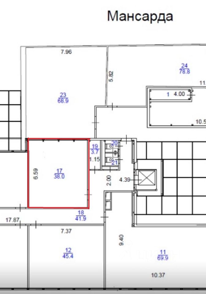 5-й мансардный этаж. Без мебели.