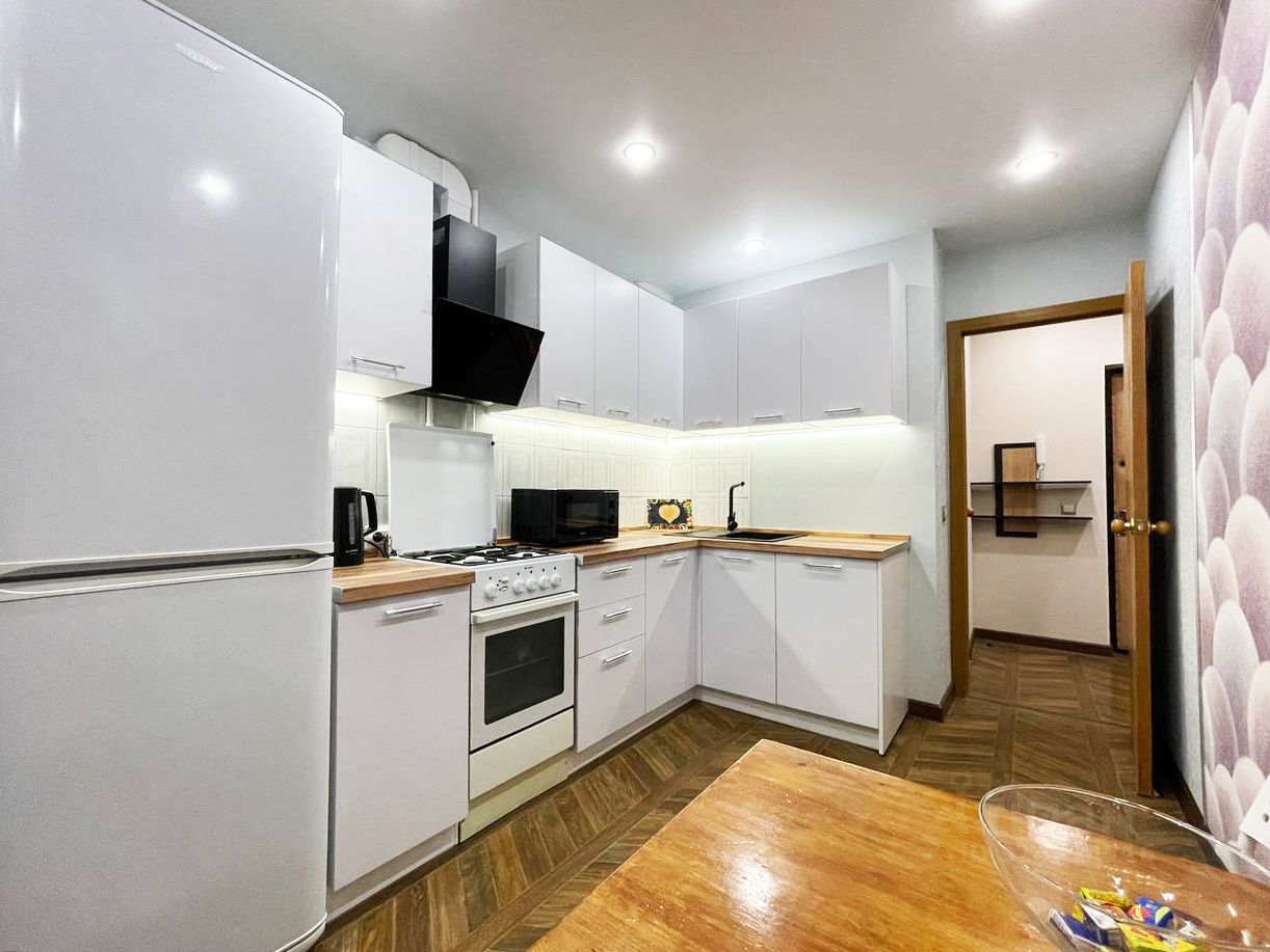 В квартире сделан хороший ремонт, есть вся необходимая мебель и техника, включая холодильник, посудомоечную и стиральную машины. Просторная кухня площадью 9 кв. м оборудована мебелью. Ванная комната с ванной, санузел совмещенный. Также есть балкон, где можно отдохнуть и насладиться свежим воздухом.