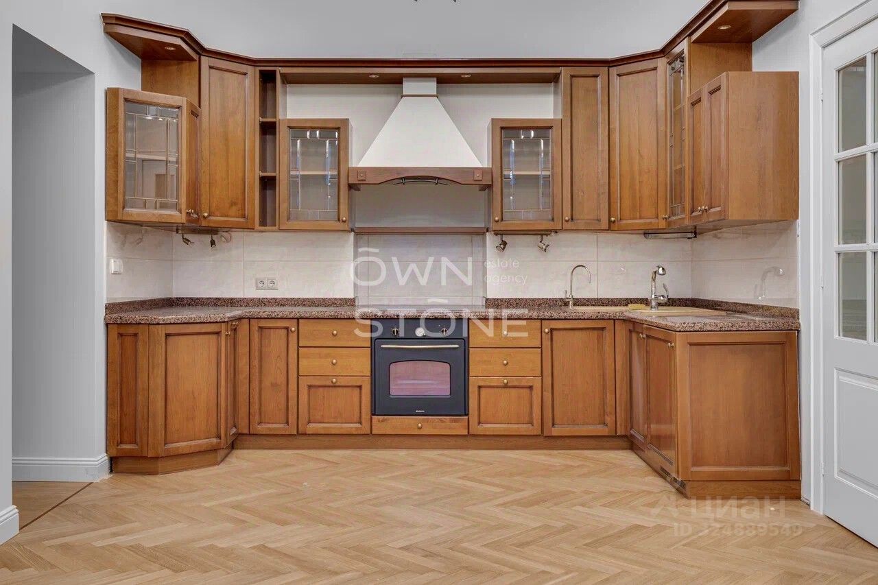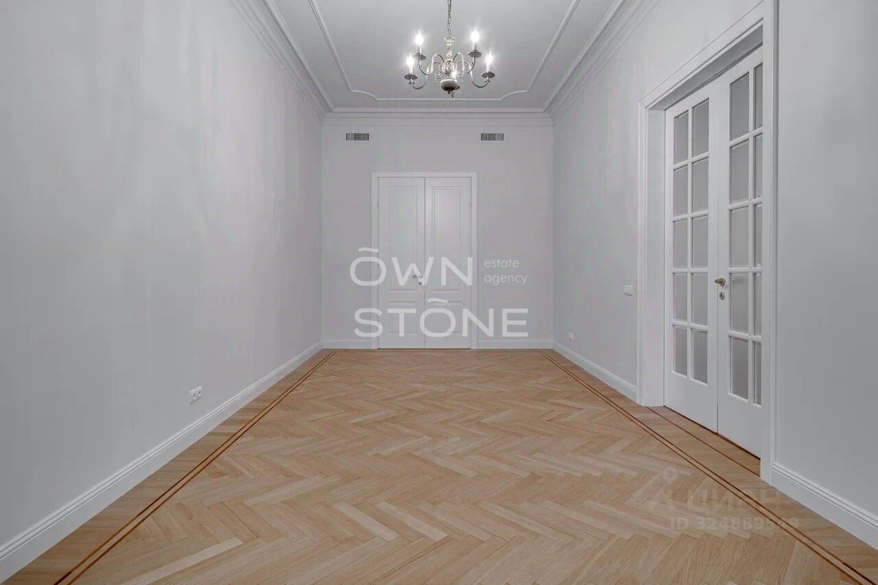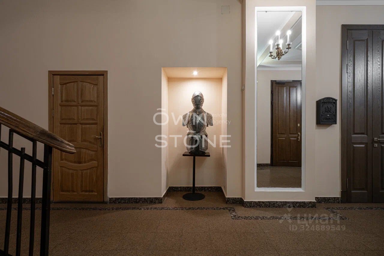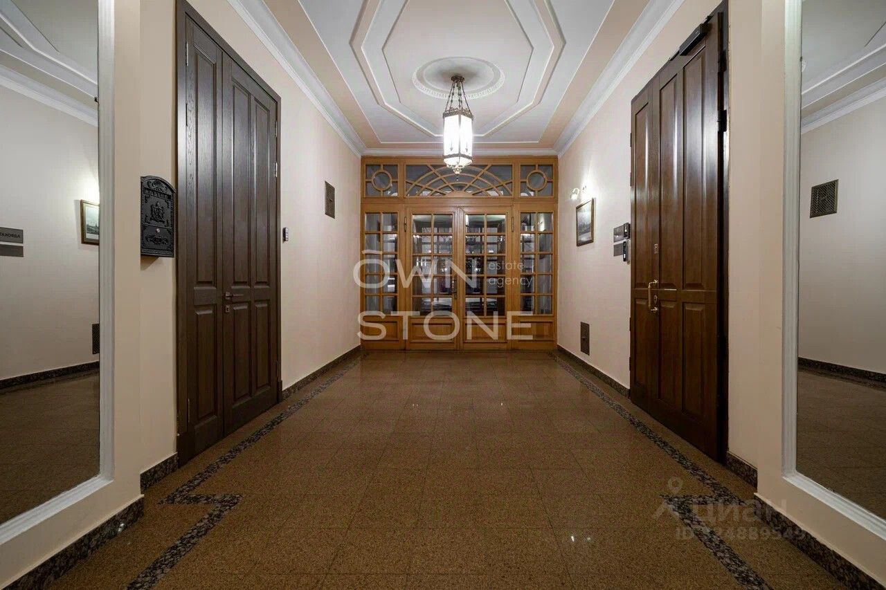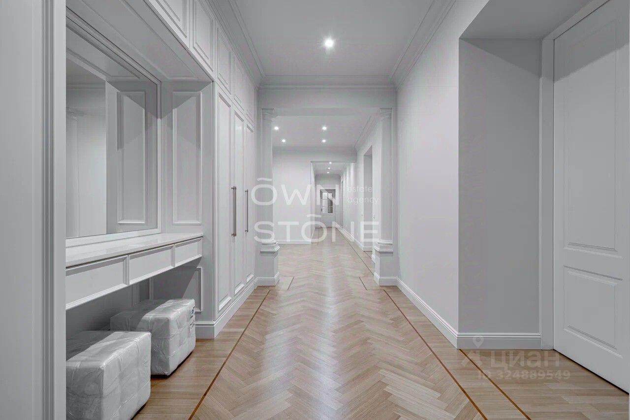 Стильная 6-комнатная квартира. 5/6 этаж. Высота потоков - 4.2 м. Количество спален: 5. Количество санузлов: 3 совмещенных, 1 раздельный. Общая площадь: 335 кв. м. Площадь кухни: 23 кв. м. Площадь комнат: 35-32-25-30-70-24. Окна во двор