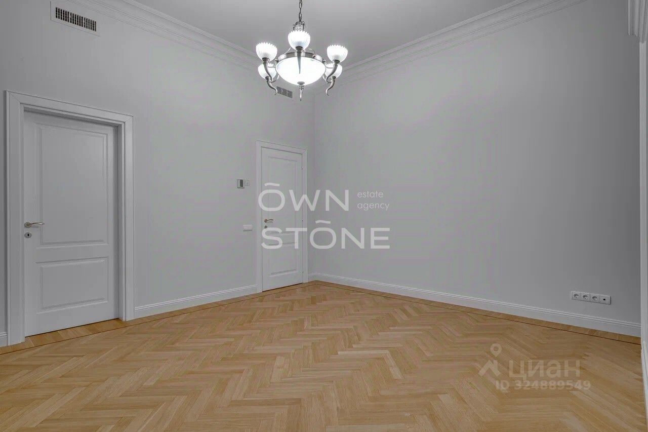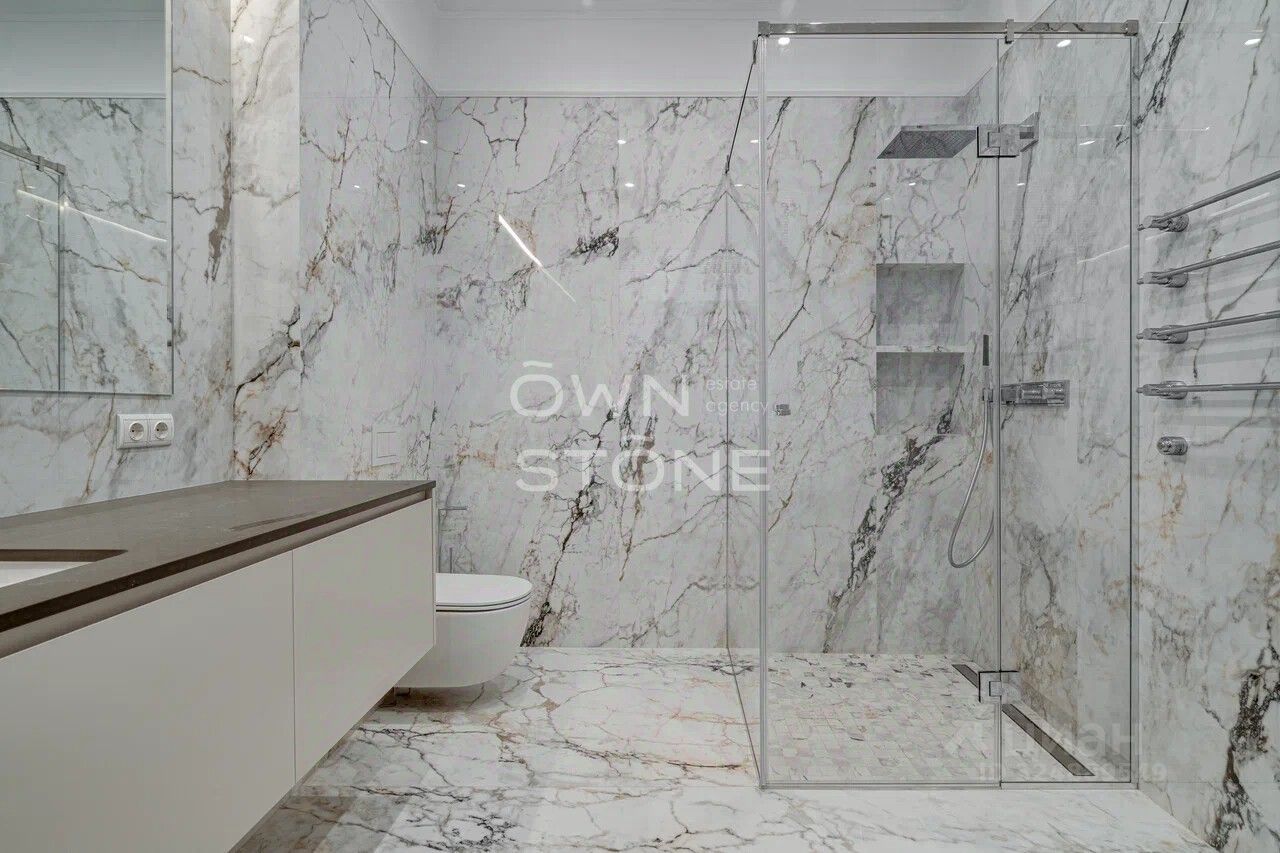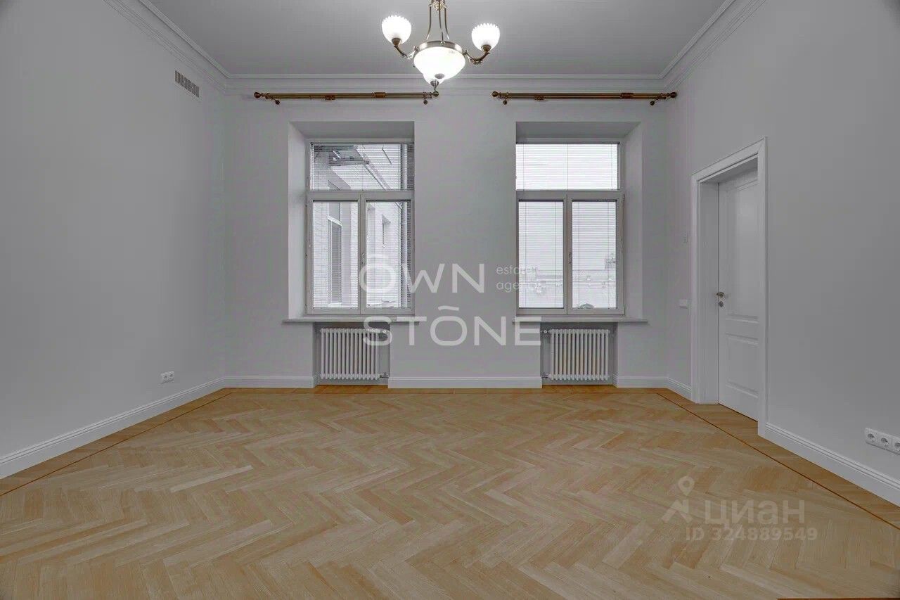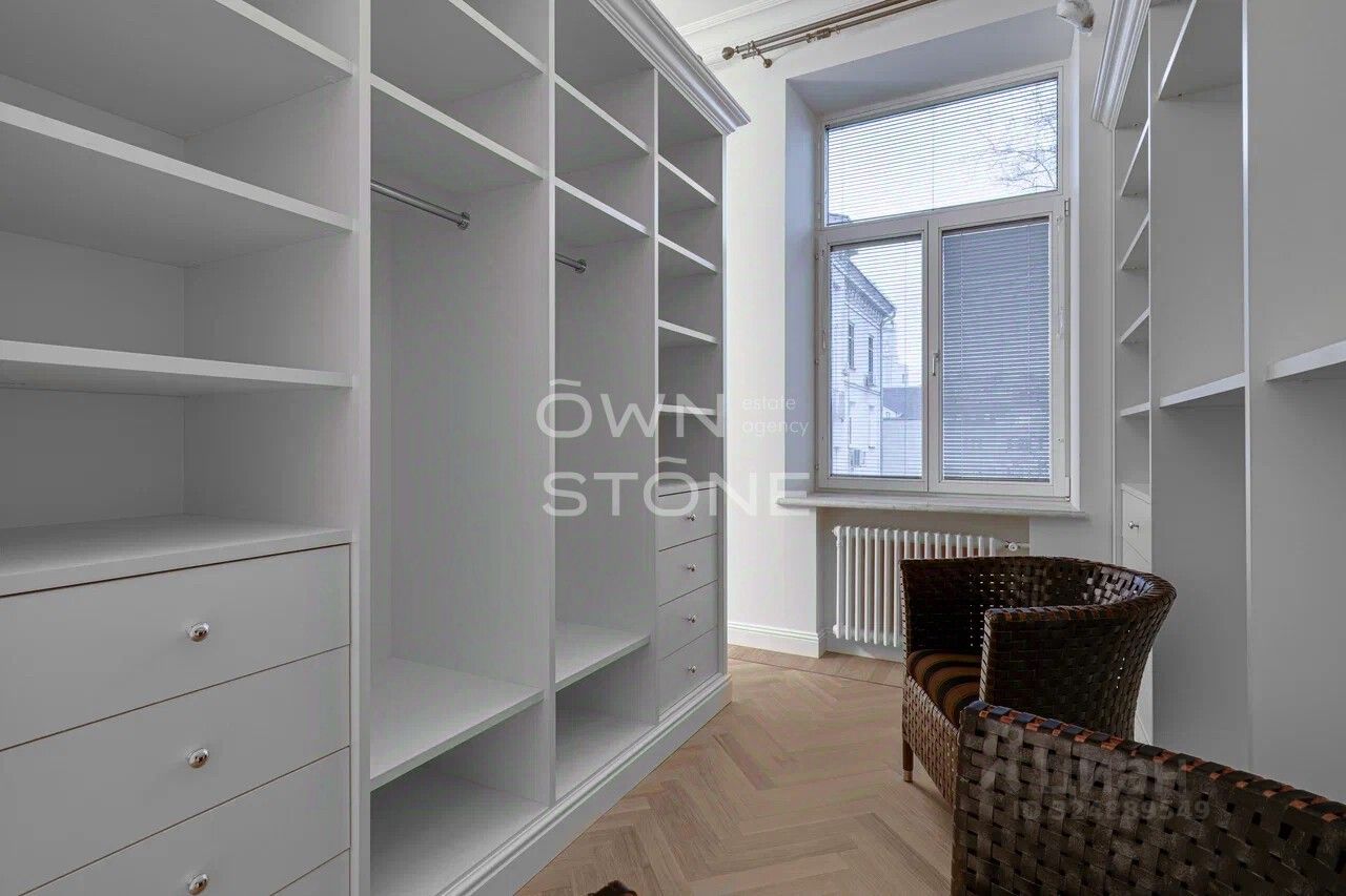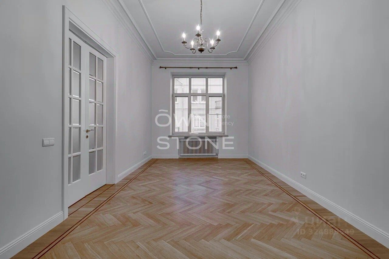 Стильная 6-комнатная квартира. 5/6 этаж. Высота потоков - 4.2 м. Количество спален: 5. Количество санузлов: 3 совмещенных, 1 раздельный. Общая площадь: 335 кв. м. Площадь кухни: 23 кв. м. Площадь комнат: 35-32-25-30-70-24. Окна во двор