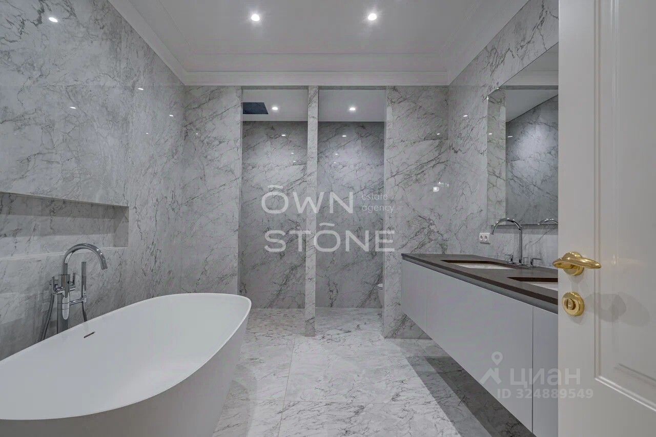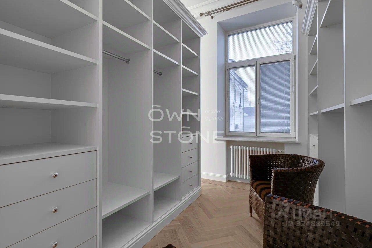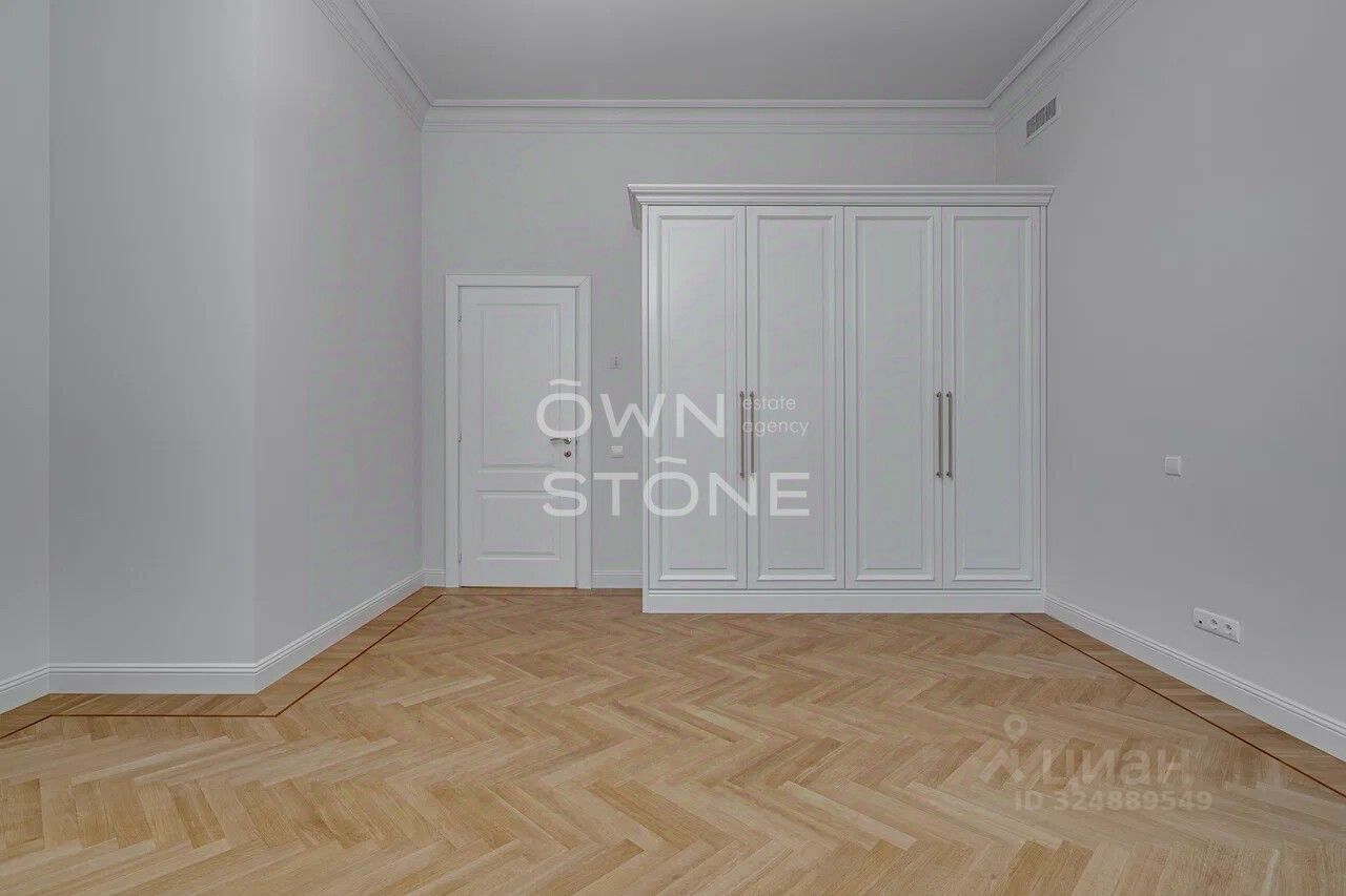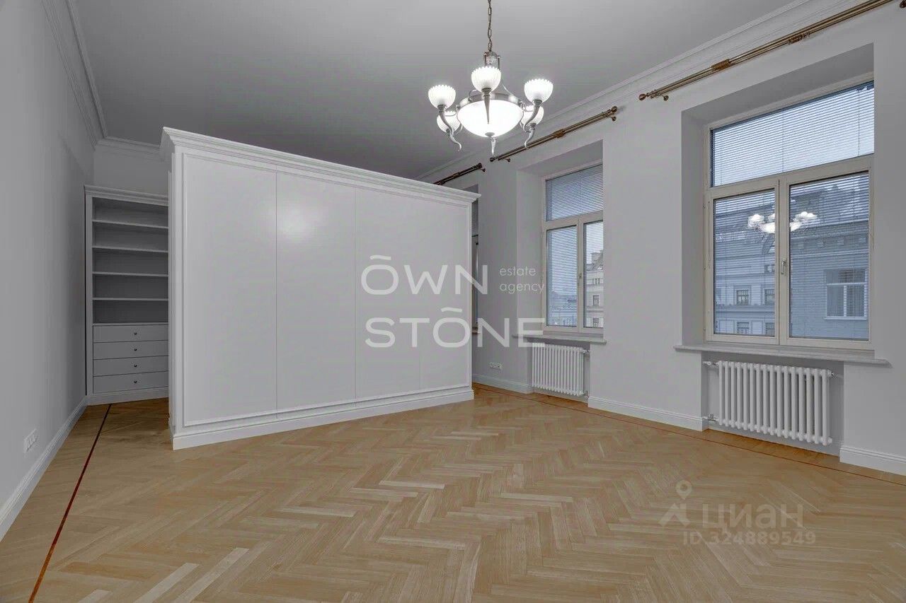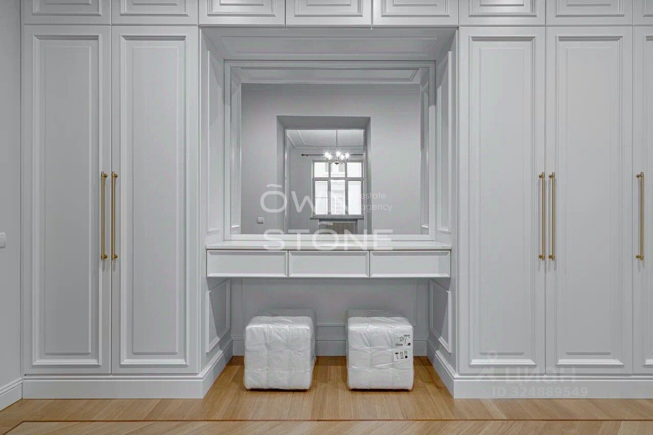 Стильная 6-комнатная квартира. 5/6 этаж. Высота потоков - 4.2 м. Количество спален: 5. Количество санузлов: 3 совмещенных, 1 раздельный. Общая площадь: 335 кв. м. Площадь кухни: 23 кв. м. Площадь комнат: 35-32-25-30-70-24. Окна во двор