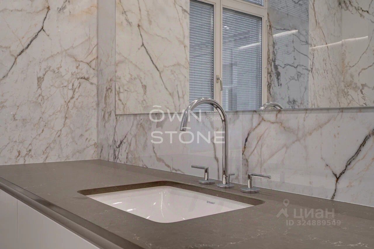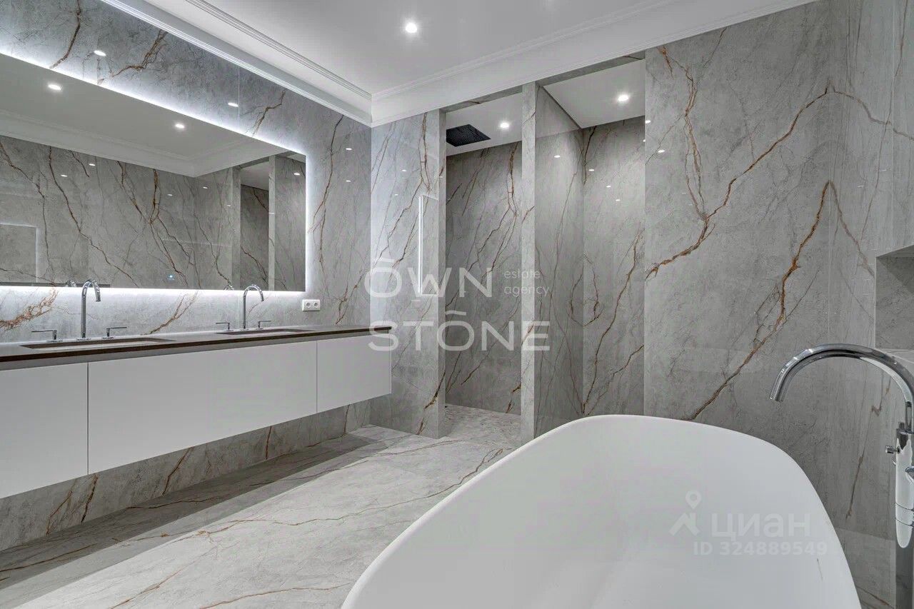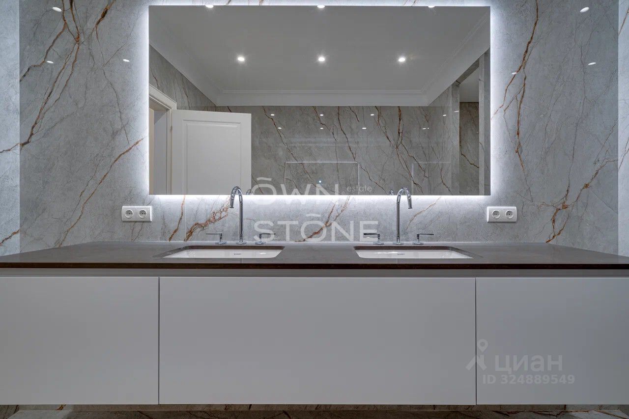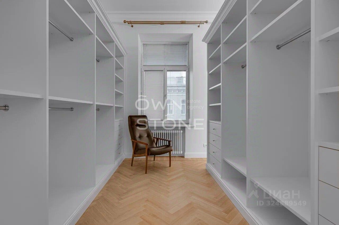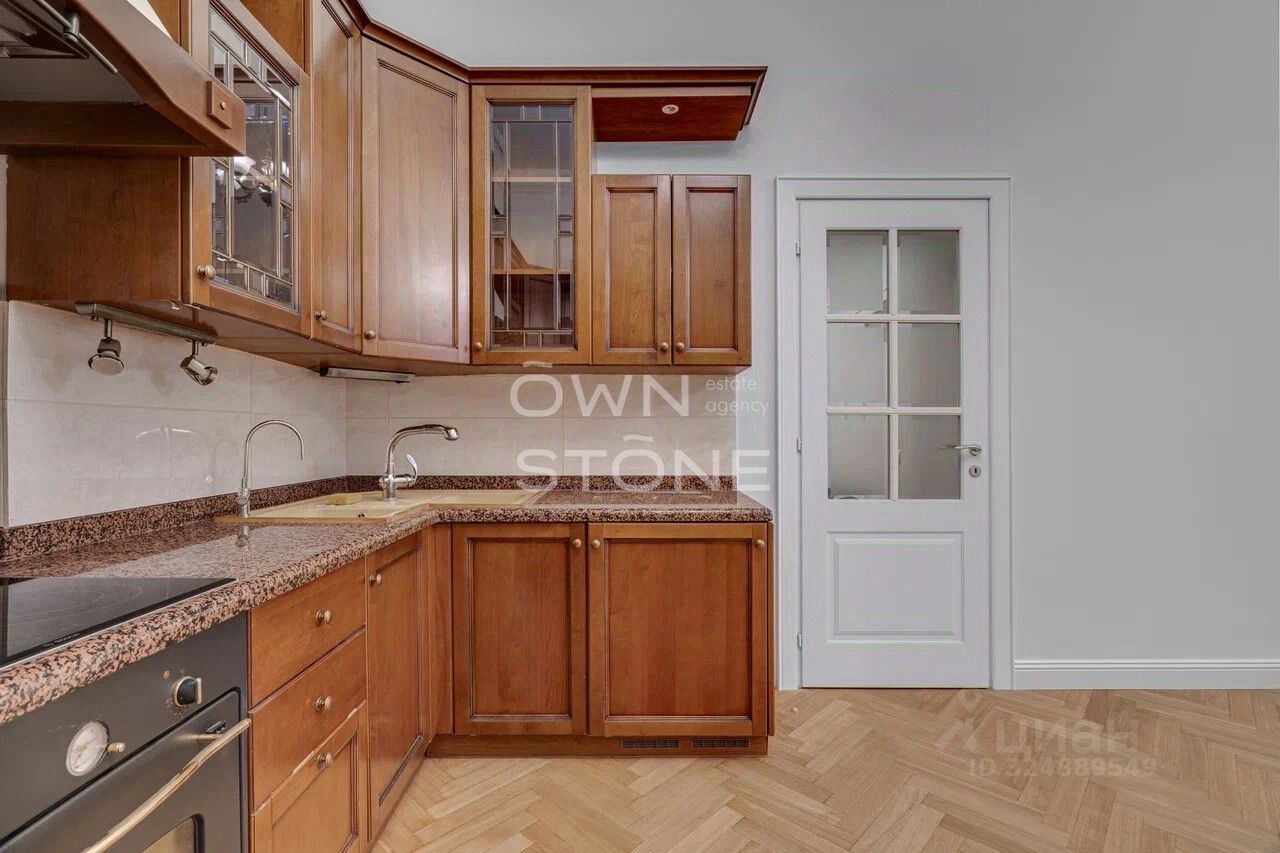 Стильная 6-комнатная квартира. 5/6 этаж. Высота потоков - 4.2 м. Количество спален: 5. Количество санузлов: 3 совмещенных, 1 раздельный. Общая площадь: 335 кв. м. Площадь кухни: 23 кв. м. Площадь комнат: 35-32-25-30-70-24. Окна во двор
