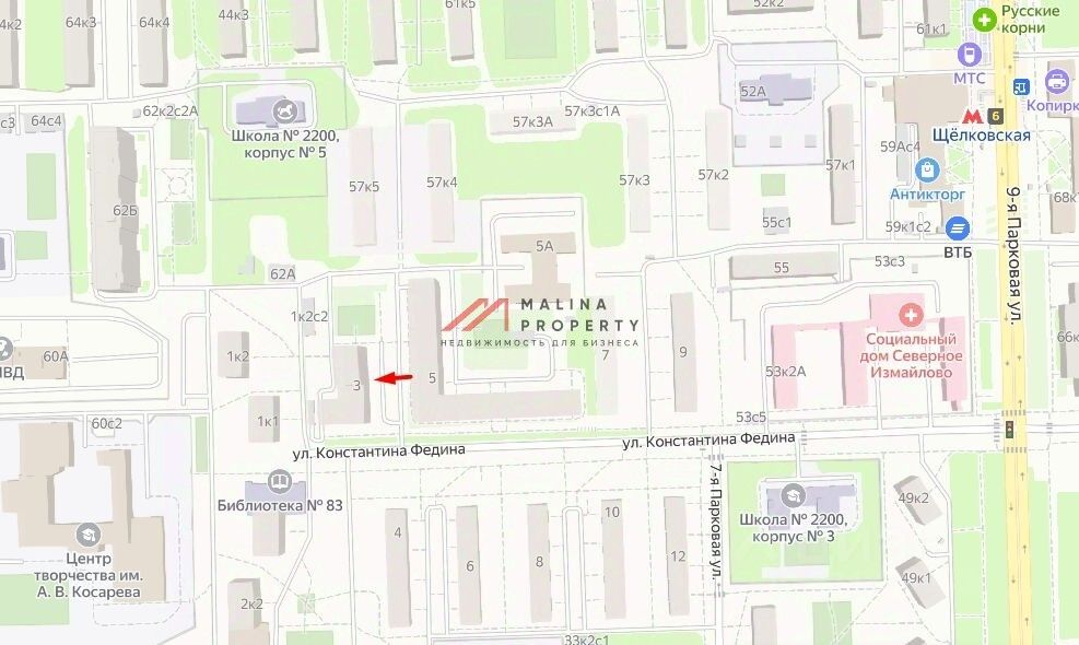 Продажа торгового помещения 93,4 м2 на ул. Константина Федина, д. 3 (6 минут пешком от метро Щелковская). 1-я линия домов.