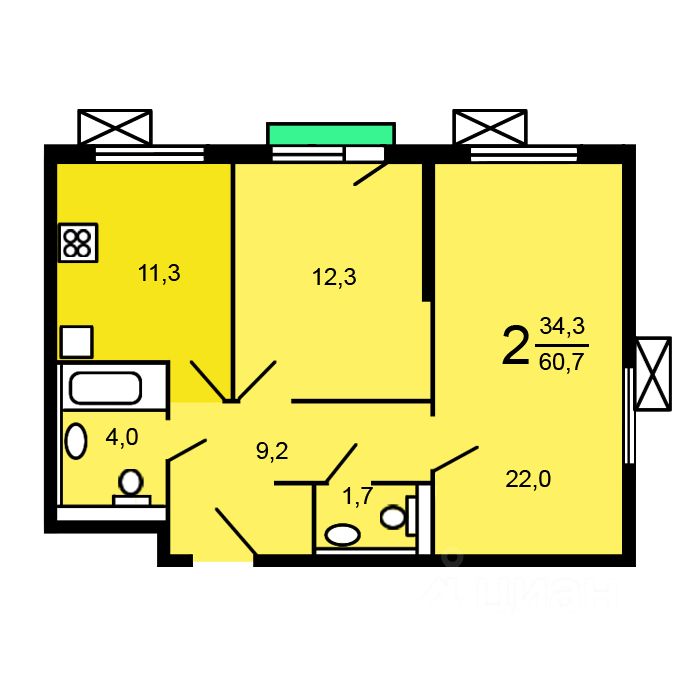 О ДОМЕ: Монолитный 23-этажный одноподъездный дом 2020г постройки. Перекрытия железобетонные. Типовая серия- СЭМ-2. На первых этажах размещаются магазины и предприятия сферы услуг. В уютных зелёных дворах оборудованы детские и спортивные площадки, зоны отдыха со скамейками и зелеными насаждениями. По периметру домов камеры видеонаблюдения. Каждый двор свободен от машин. Для жителей комплекса оборудован подземный паркинг, который оснащен системами видеонаблюдения, вентиляции и пожаротушения. О КВАРТИРЕ: Предлагается к покупке светлая и уютная 2-комнатная квартира общей площадью 60 кв.м. Жилая-35 кв.м. Кухня-11 кв.м. Комнаты изолированные 22 кв.м. и 12 кв.м. Два санузла. Потолки 2.8 м. Ремонт от застройщика.