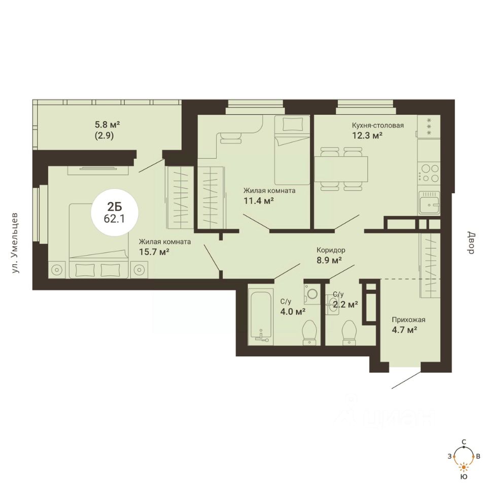 Общая площадь62,1 м2