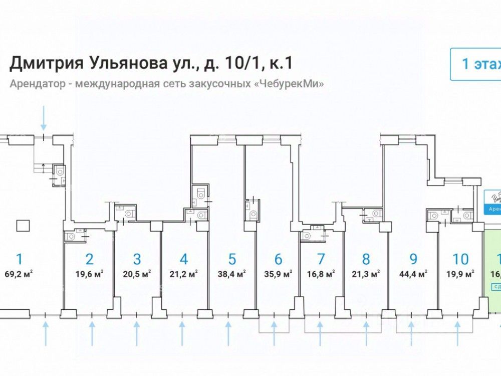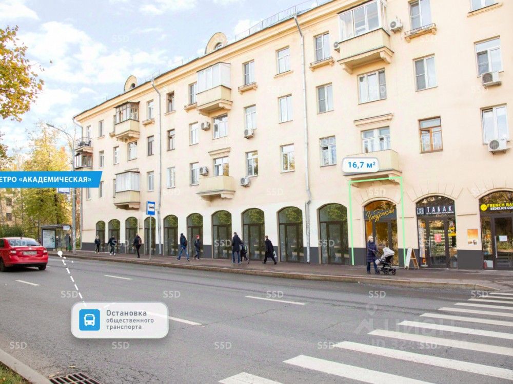 Продажа торгового помещения с арендатором на 1-м этаже 5-этажного жилого дома, находящегося по адресу: ул. Дмитрия Ульянова, 10/1к1. Шаговая доступность от ст. метро ''Академическая'' - 5 минут пешком. Отличная пешеходная и транспортная доступность. В непосредственной близости пешеходный переход и остановка общественного транспорта. Высокий рекламный потенциал и места для размещения вывесок. Помещение расположено в крупном сложившемся жилом районе с высокой плотностью застройки и развитой инфраструктурой.