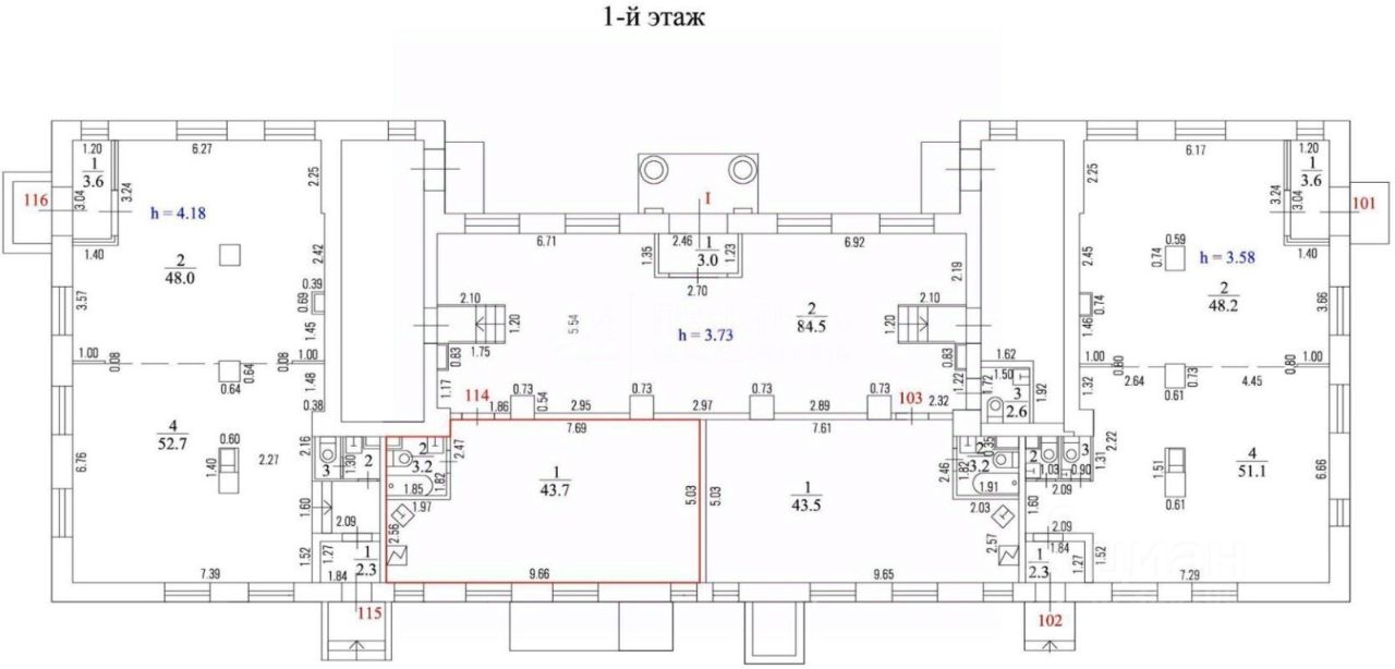 - 1-й этаж общая площадь 443 кв.м. (в том числе: вестибюль/ресепшен, 2 отдельных