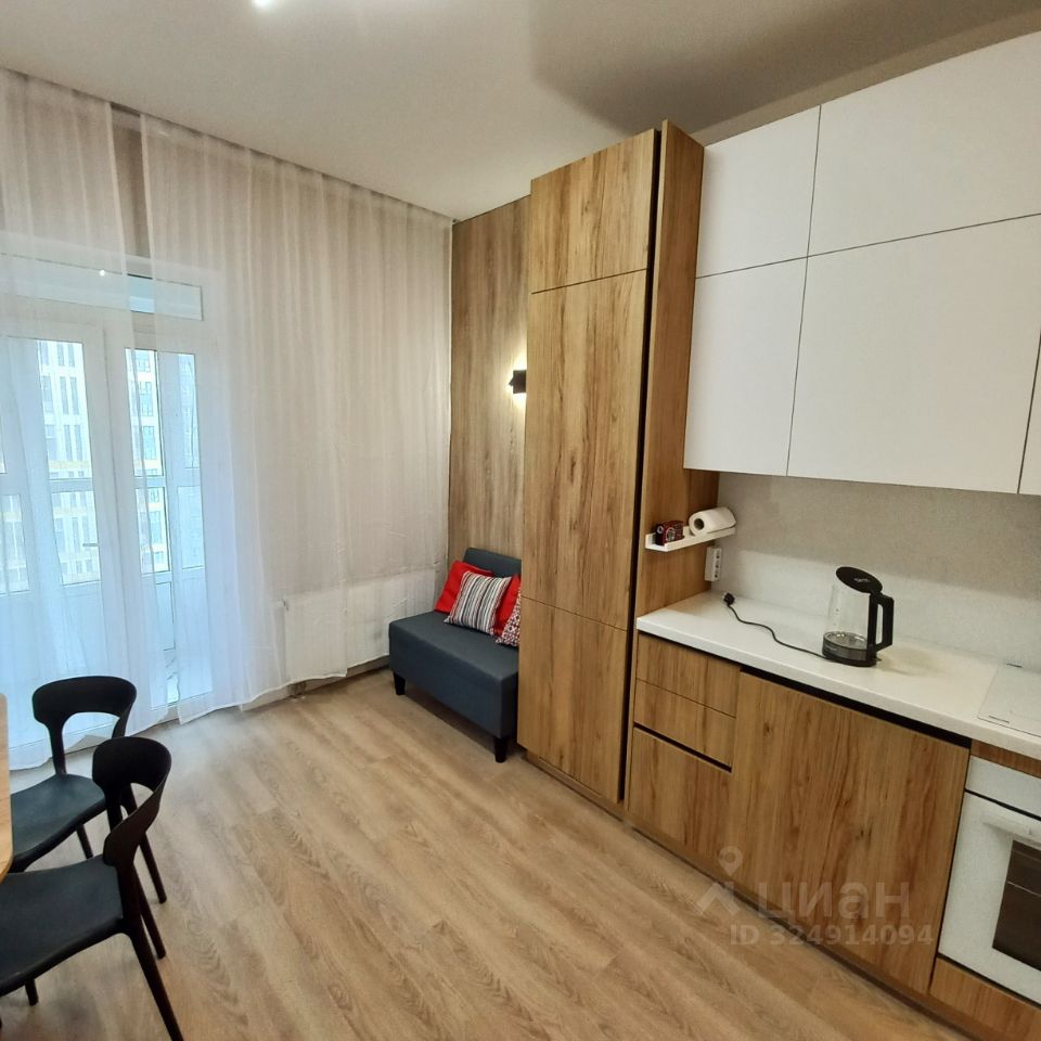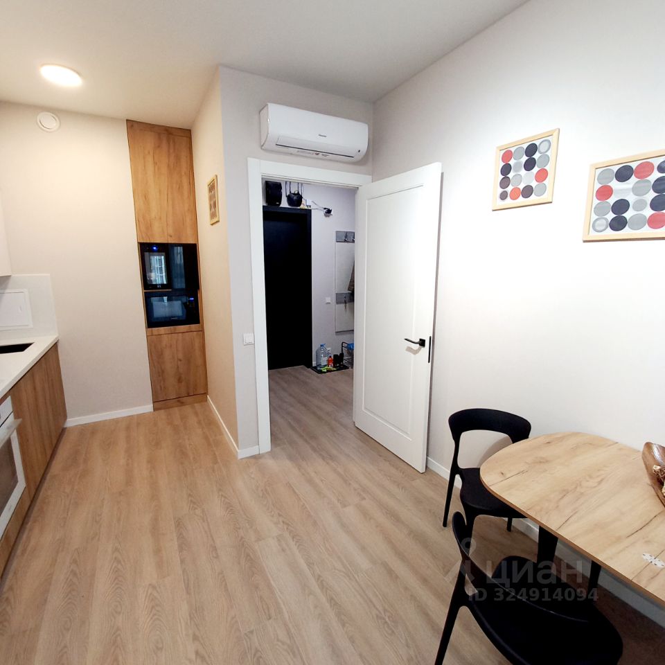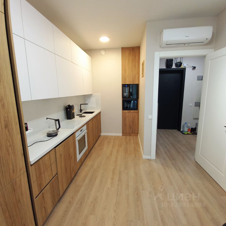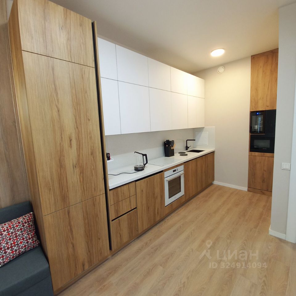 КУХНЯ-ГОСТИНАЯ: - вместительный кухонный гарнитур с приятными для глаза и на ощупь фасадами (белого цвета и под дерево) и с множеством шкафов, которые позволят без проблем разместить всю кухонную утварь, - вся техника встроенная: индукционная 4-х конфорочная варочная панель, духовой шкаф, вытяжка, холодильник, посудомоечная машина, микроволновая печь, винный шкаф, электрочайник, стиральная машина), - стол, стулья, - небольшой уютный диван со своим освещением и удобно расположенной розеткой, - КОНДИЦИОНЕР.