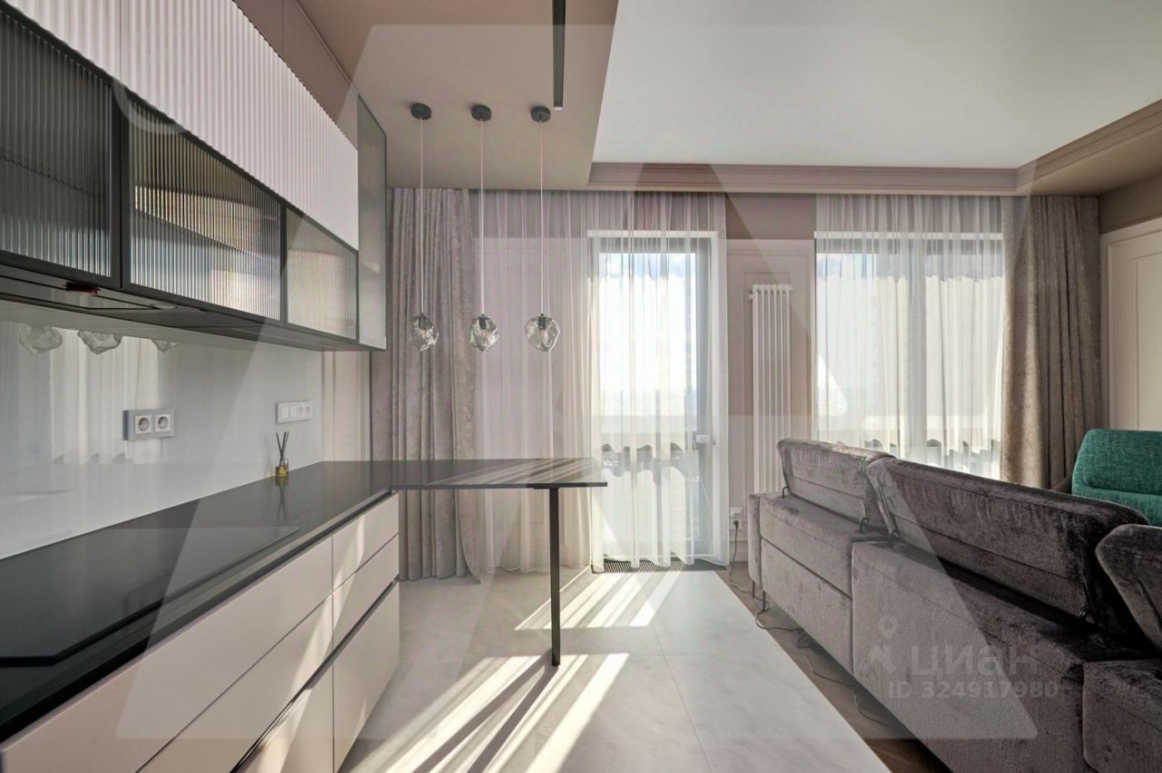 Квартира сделана полностью для себя. Планировка квартиры: просторная кухня-гостиная с зонированием пространства, мастер-спальня со своим санузлом и гардеробной, две изолированные спальни, совмещенный санузел, постирочная и зона хранения. Новый современный ремонт премиального качества: от инженерии, сантехники, отделочных материалов до техники премиальных марок и комплектаций, а также предметов мебели и декора. Квартира оснащена функцией умный дом, которая может дистанционно с телефона управлять водоснабжением, отоплением, кондиционированием, подогревом полов, мониторингом системы протечек, освещением и шторами, часть функций интегрировано в систему Умный дом Алиса.