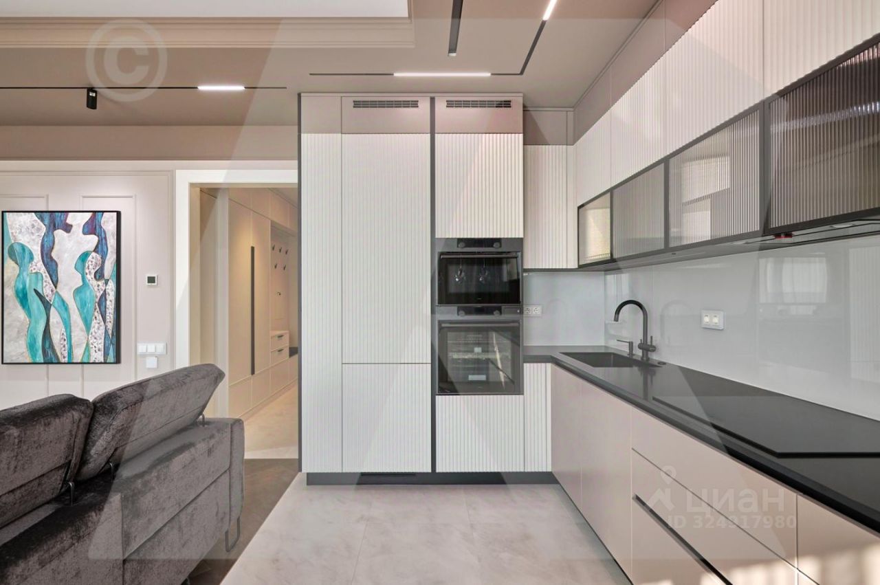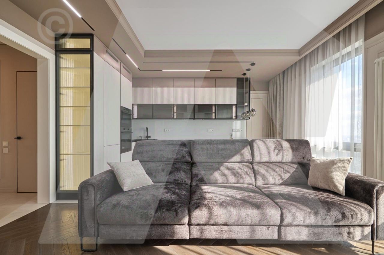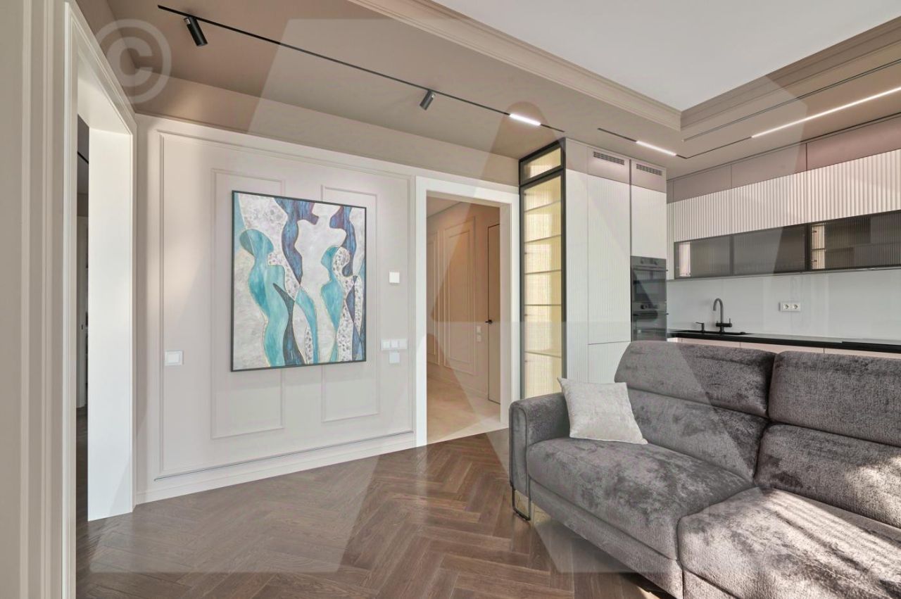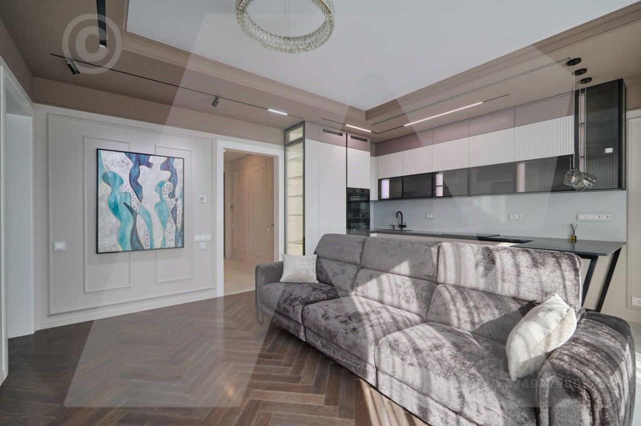 Квартира сделана полностью для себя. Планировка квартиры: просторная кухня-гостиная с зонированием пространства, мастер-спальня со своим санузлом и гардеробной, две изолированные спальни, совмещенный санузел, постирочная и зона хранения. Новый современный ремонт премиального качества: от инженерии, сантехники, отделочных материалов до техники премиальных марок и комплектаций, а также предметов мебели и декора.