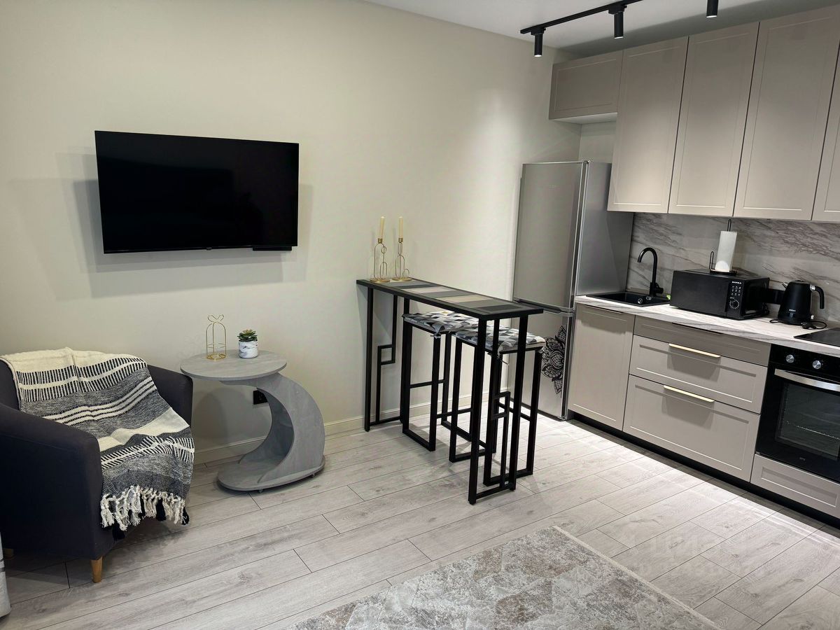 Студия оснащена абсолютно всем, что необходимо для комфортного проживания.