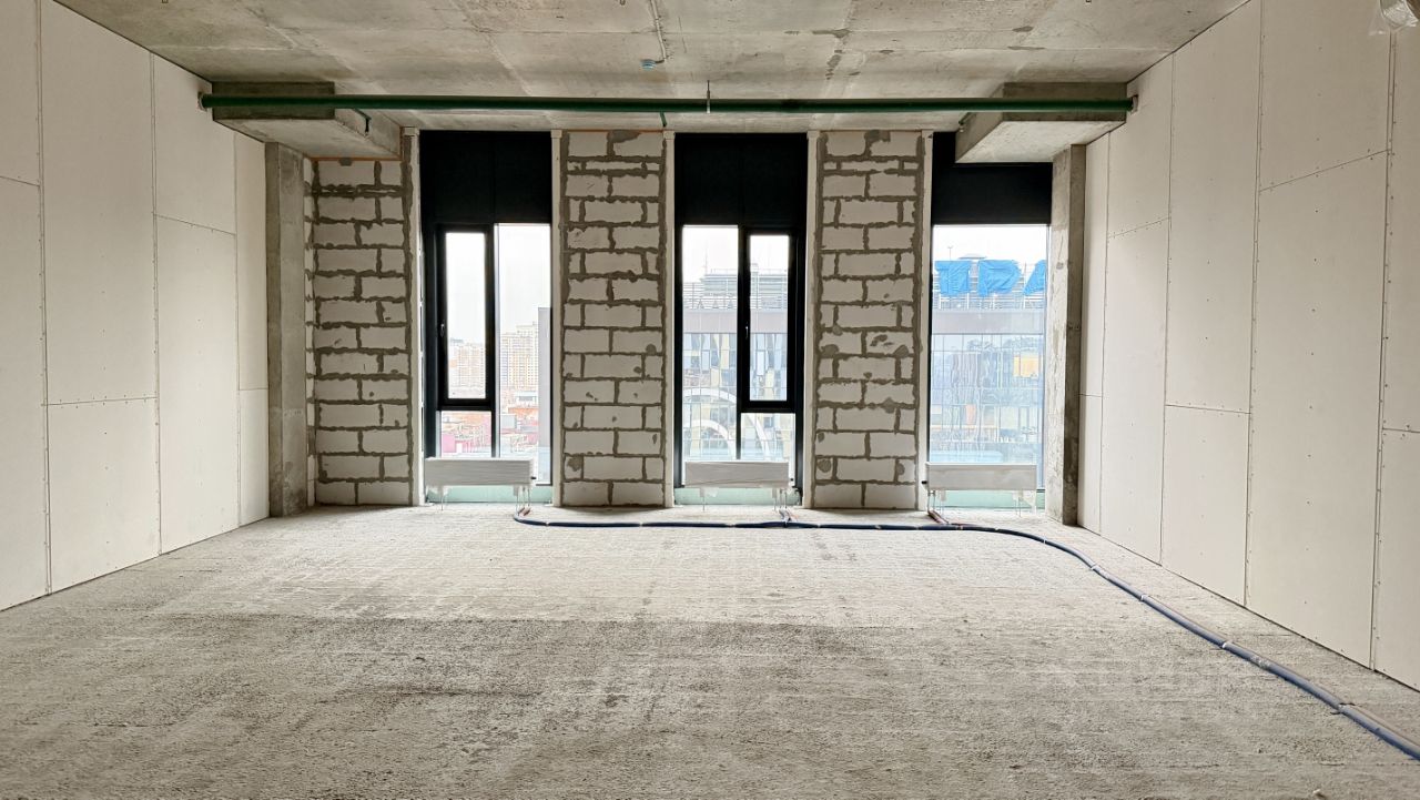 Характеристики помещения: - Площадь - 104м2 - Высота потолков 3,5 метра - Мокрая точка - Проект со смешанной планировкой - Панорамные окна - Открывающиеся окна, для проветривания.