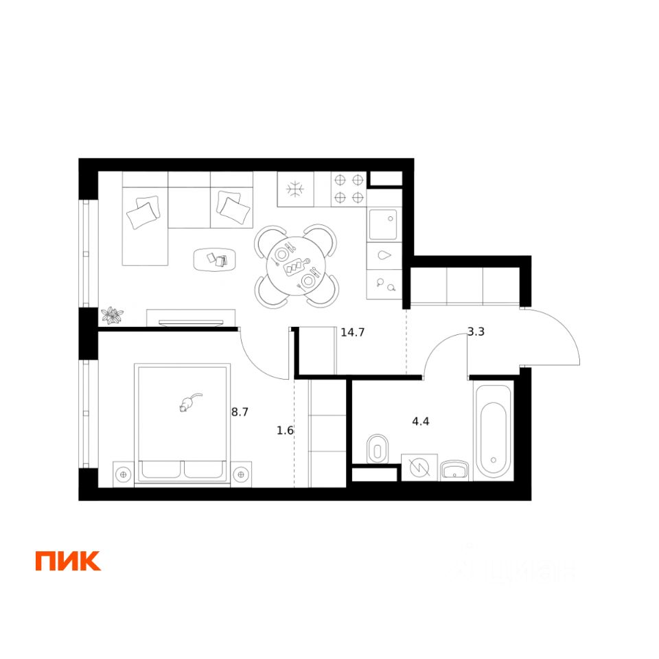 Общая площадь32,7 м2