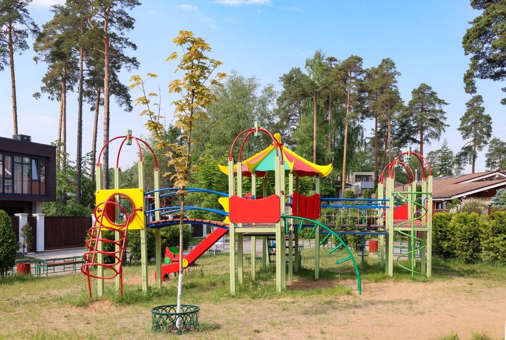 Поселок застроен, соседи проживают круглогодично, окружение солидное, развитая инфраструктура - в 500м детский сад, в радиусе 1-5км школы, сетевые магазины - Лента, Глобус, Лемана ПРО, автобусная остановка в 500м, до жд ст. Зеленый бор 15 мин. пешком. На территории поселка есть детская площадка, гостевая парковка, освещение, 2 КПП.