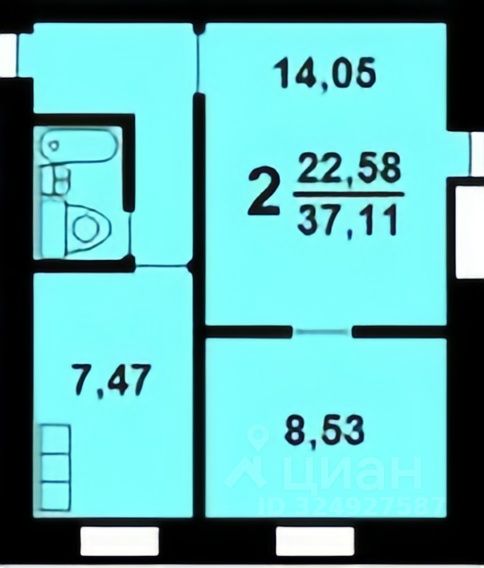 Продается 2-комн. квартира 36.5 м² в доме серии II-18. Свободная планировка, все несущие стены по периметру
